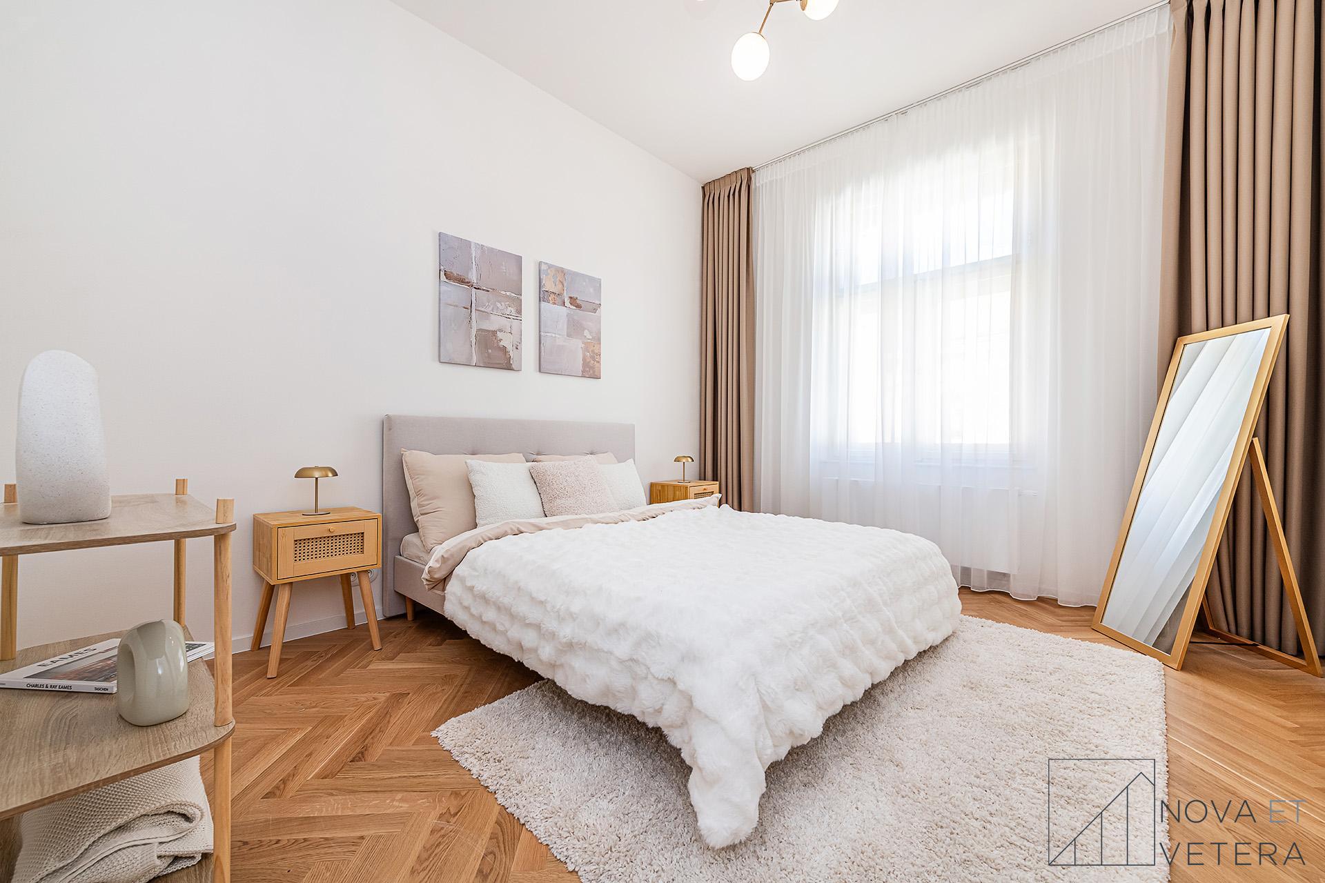 Vysoký standard kompletní rekonstrukce zahrnuje nové rozvody elektřiny, vody a odpadů. Dále rekonstrukce zahrnuje dřevěné parketové podlahy, kvalitní velkoformátové obklady a dlažbu od italského dodavatele MARAZZI. V koupelně a na toaletě naleznete sanitu značky GROHE. Moderní kuchyňská linka disponuje mimo jiné kvalitními spotřebiči značky BOSCH a zapuštěným granitovým dřezem.