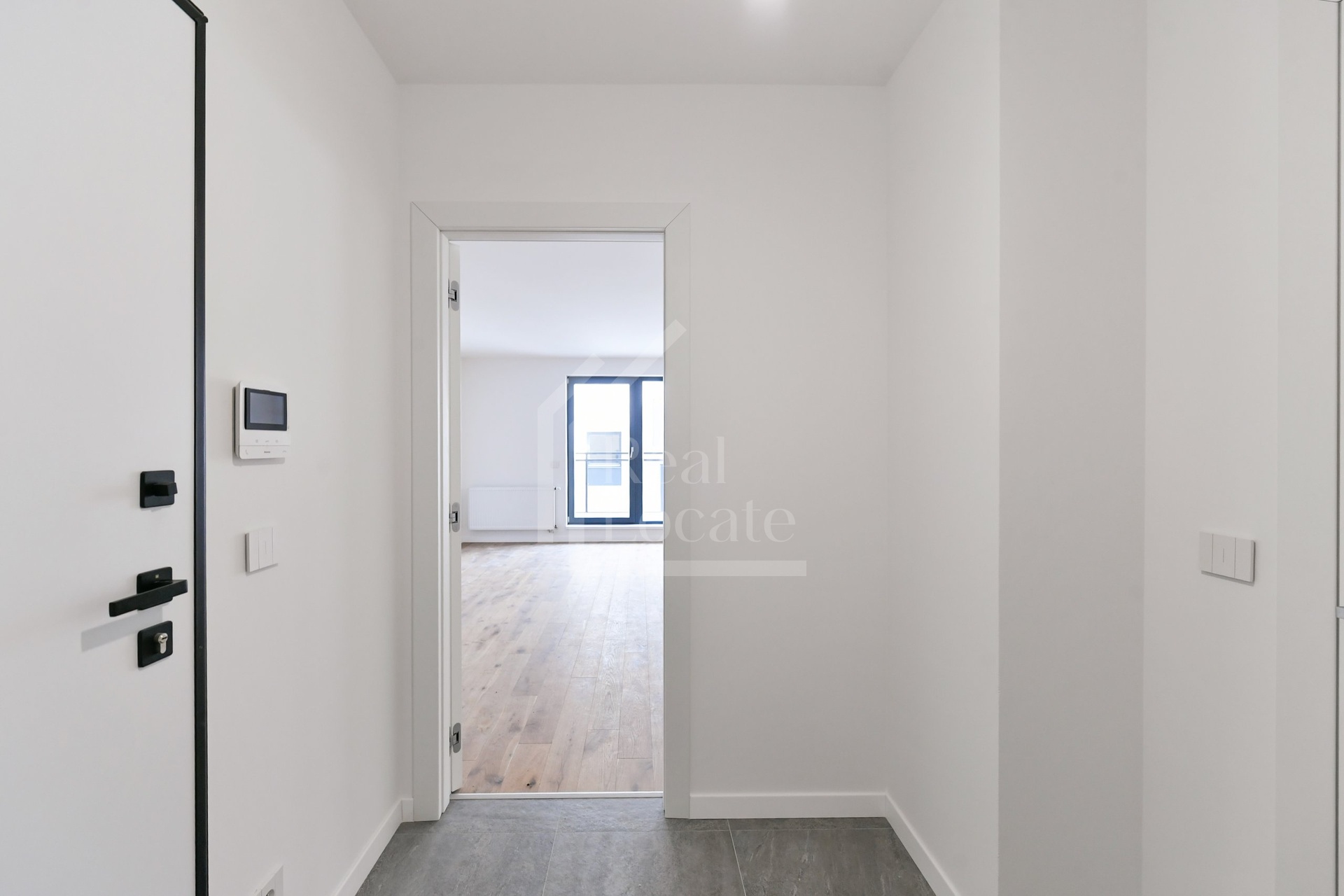 Byt tvoří prostorný obývací pokoj s kuchyňským koutem, samostatná ložnice, koupelna a vstupní chodba. Díky velkým oknům je interiér příjemně prosvětlený a působí vzdušným dojmem. Projekt nabízí kvalitní provedení spojený s moderní architekturou a nízkými provozními náklady.