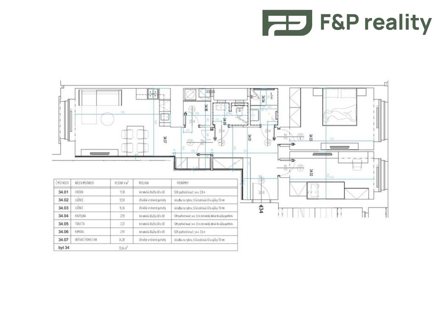 - Dispozice bytu: 3+kk