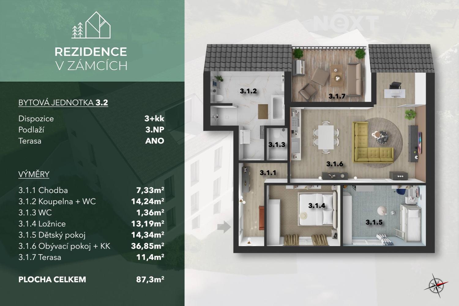 Nabízíme k prodeji nadstandardní byt v moderní rezidenci V Zámcích, situované v klidné a žádané lokalitě Praha 8 – Bohnice, přímo na adrese V Zámcích 51.