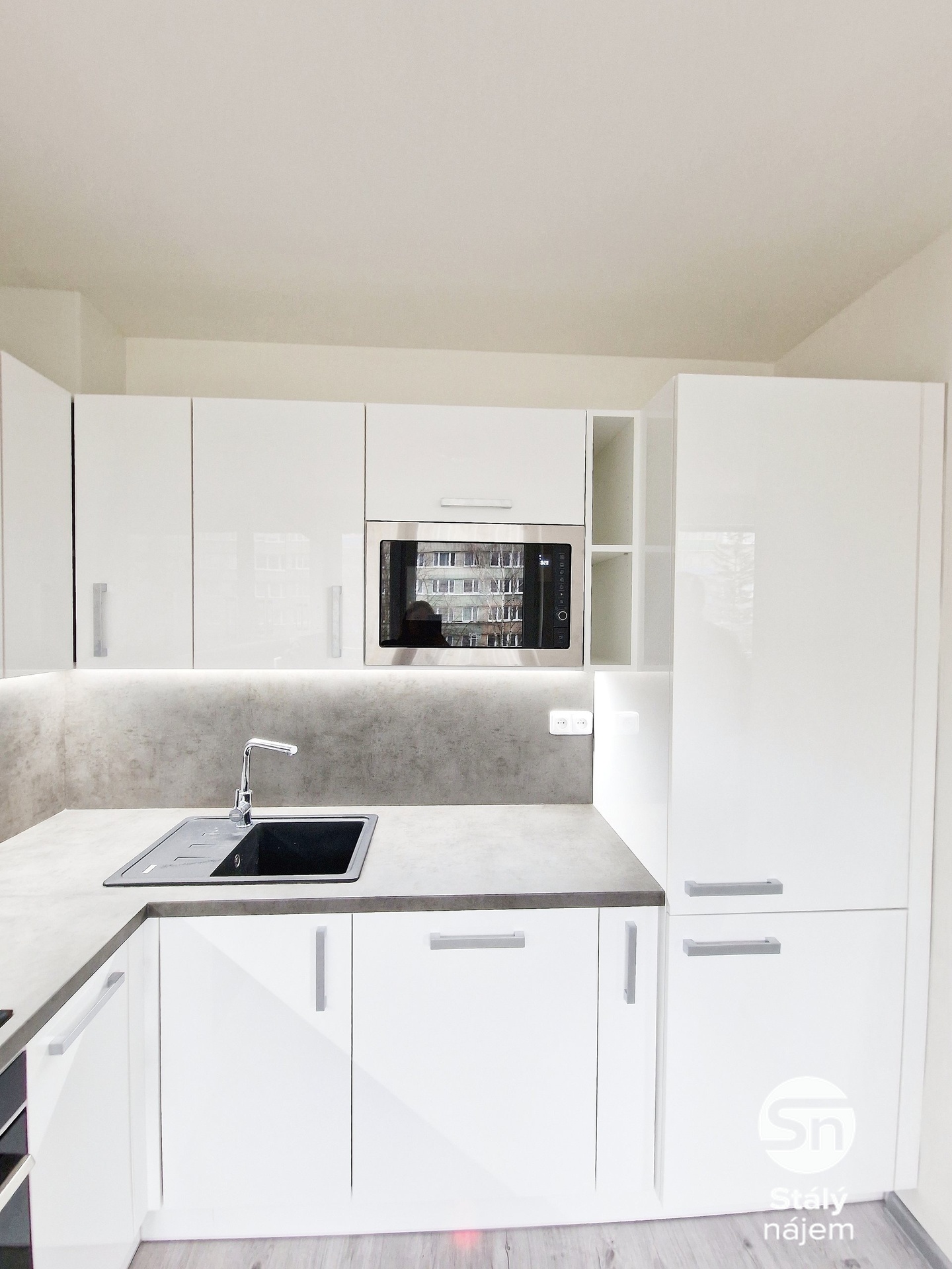 Bytu dominuje prostorná moderní kuchyňská linka, vybavená vestavěnými spotřebiči, jako je lednice s mrazákem, myčka, elektrický sporák, varná deska a mikrovlnná trouba. Nezařízený obývací pokoj je světlý a máte z něj přístup na lodžii. Další dva pokoje jsou také nezařízené, takže si je můžete zařídit podle svých představ - například jako relaxační ložnici a hravý dětský pokoj. V zrekonstruované koupelně najdete sprchový kout a umyvadlo se skříňkou. Toaleta je samostatná. V chodbě je vestavěná skříň poskytující dostatek úložného prostoru. Velkou výhodou je také komora na patře přímo naproti bytu.