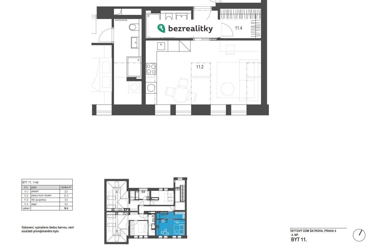 | Dispozice/podlahová plocha: | 1+kk/30 m² |