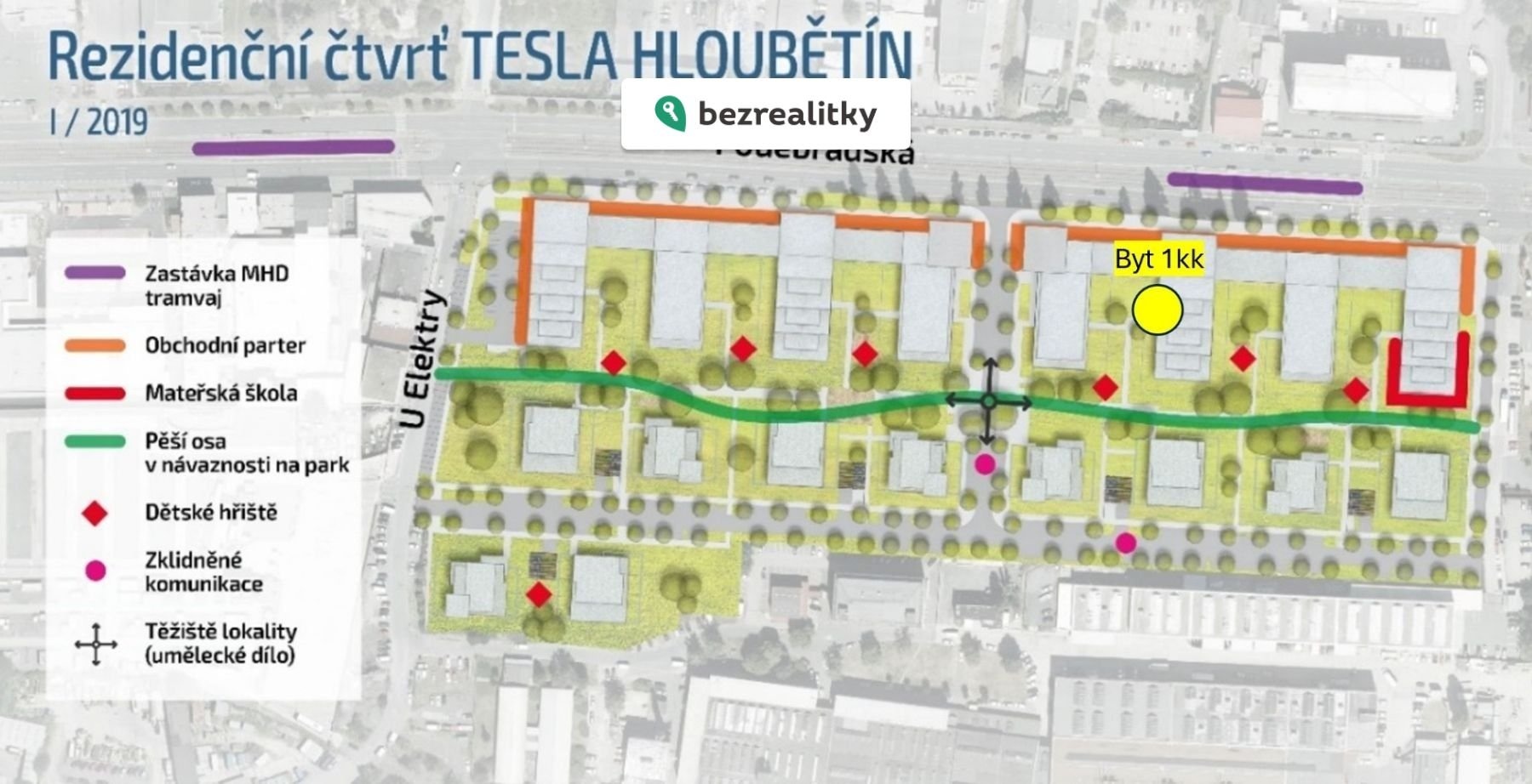Nabízím k prodeji tichý a moderní byt o dispozici 1+kk a celkové ploše 32,9 m², nacházející se v 5 nadzemním podlaží v moderním rezidenčním projektu Tesla Hloubětín, Praha 9 – Poděbradská.