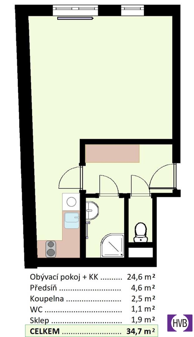 | Dispozice/podlahová plocha: | 1+kk/35 m² |