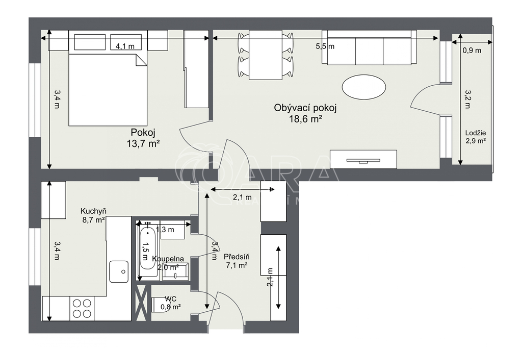 | Dispozice/podlahová plocha: | 2+1/55 m² |