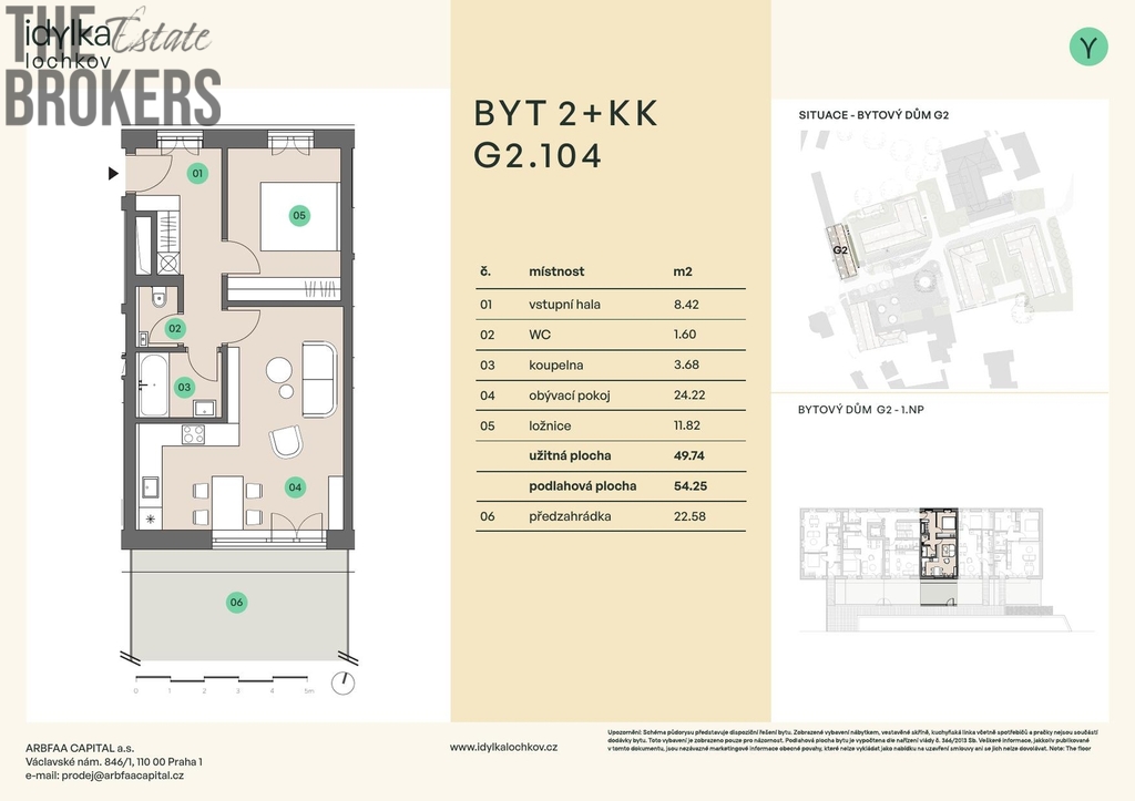 Tento prosvětlený jižně orientovaný byt se nachází v přízemí, disponuje užitnou plochou 54 m² plus předzahrádka 23 m2, což nabízí příjemné a komfortní bydlení a poskytuje možnost relaxace a trávení volného času venku. Oceníte také možnost dokoupení sklepa a garážového parkovacího stání. Standardní výbavou všech jednotek jsou vytápěné podlahy, elektrické před-okenní žaluzie, možnost využití venkovní elektro nabíjecí stanice pro automobily a společná komunitní zahrada. Možnost využití instalace smart ovládání bytu na dálku v rámci klientských změn.
