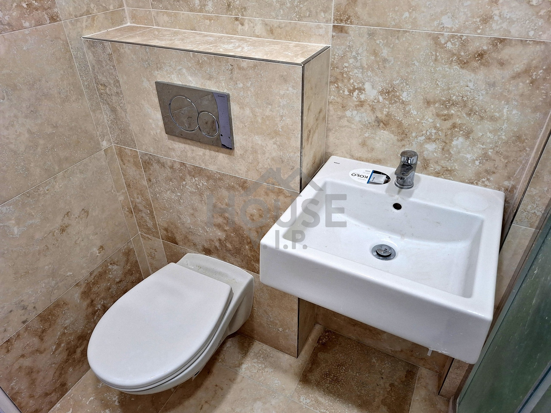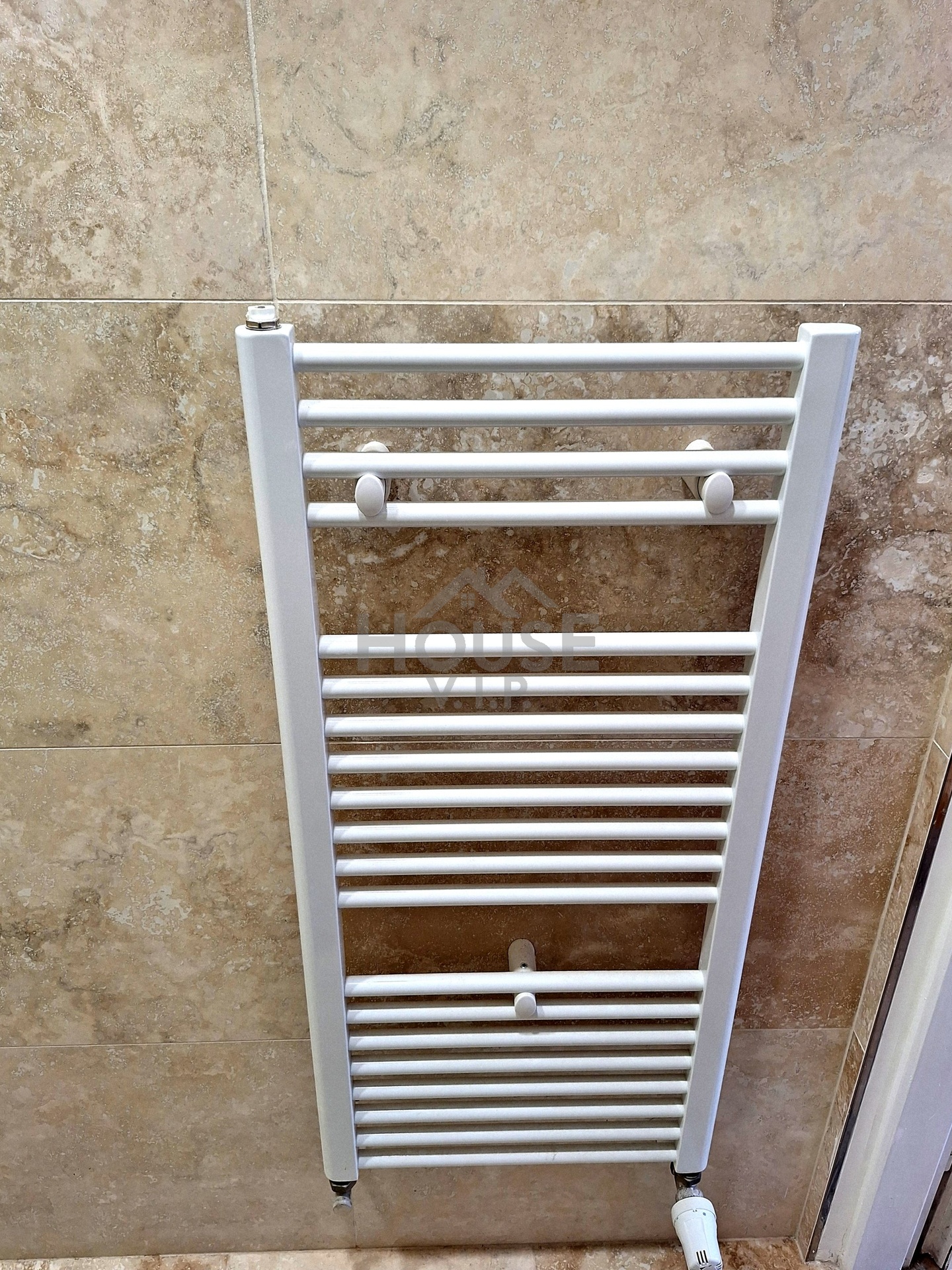 Koupelna s toaletou: 3,7 m² – sprchový kout, přípojka na pračku, žebříkové topení
