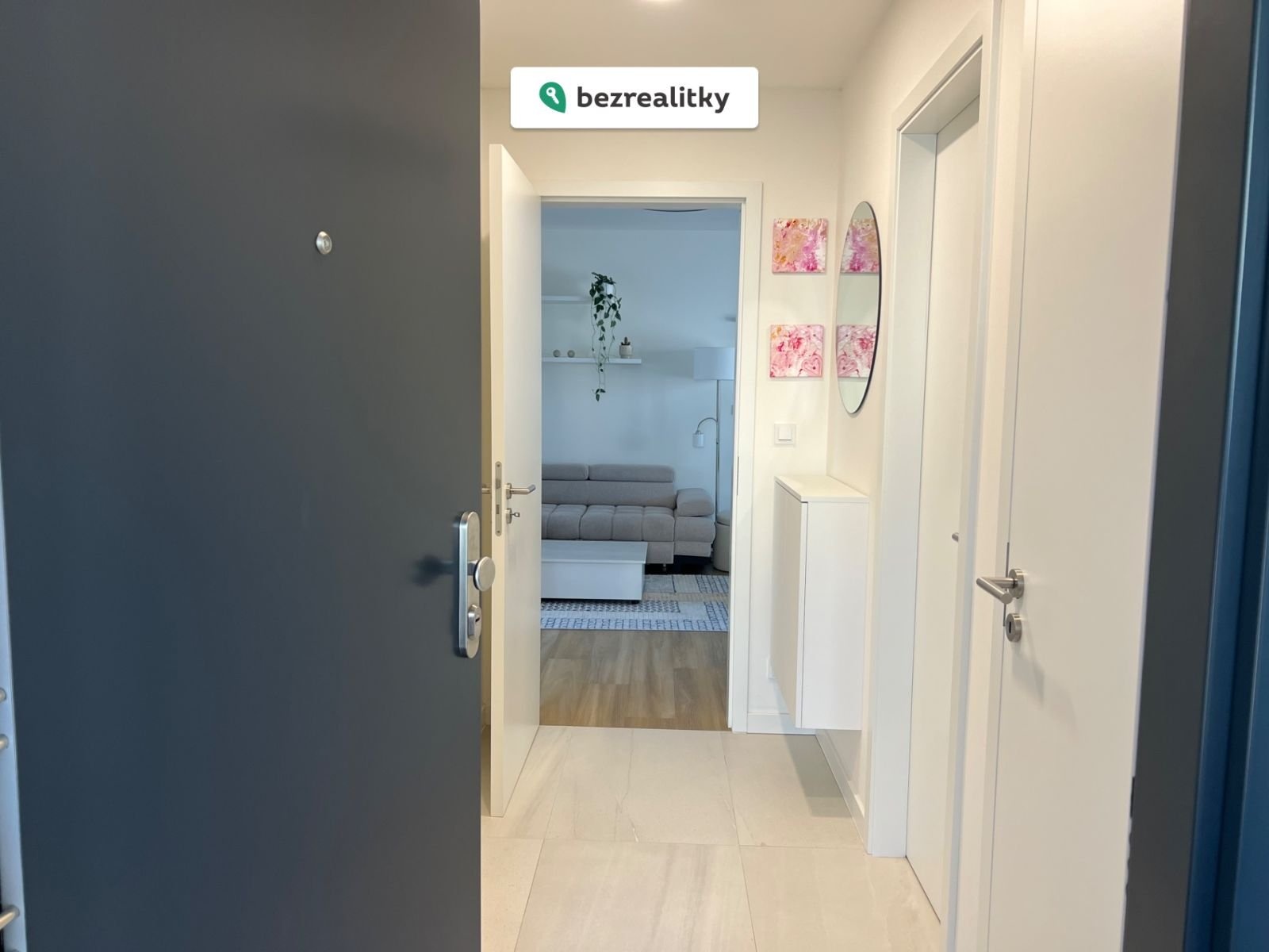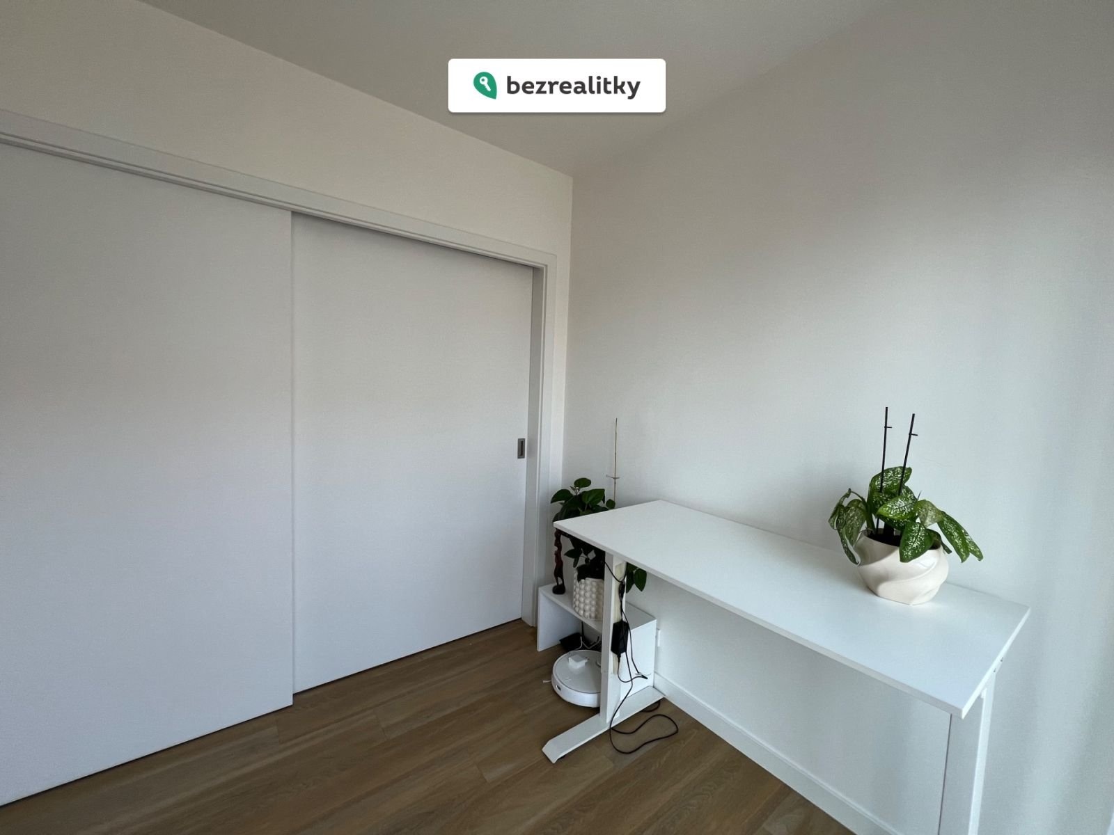 Byt tvoří obývací pokoj s kuchyňským koutem, ložnice, koupelna s WC a chodba. Dispozice je prakticky upravena jako 3+kk, kdy je velký obytný prostor pomocí posuvných dveří rozdělen na obývací část a samostatnou pracovnu, kterou lze plnohodnotně využít jako další pokoj.