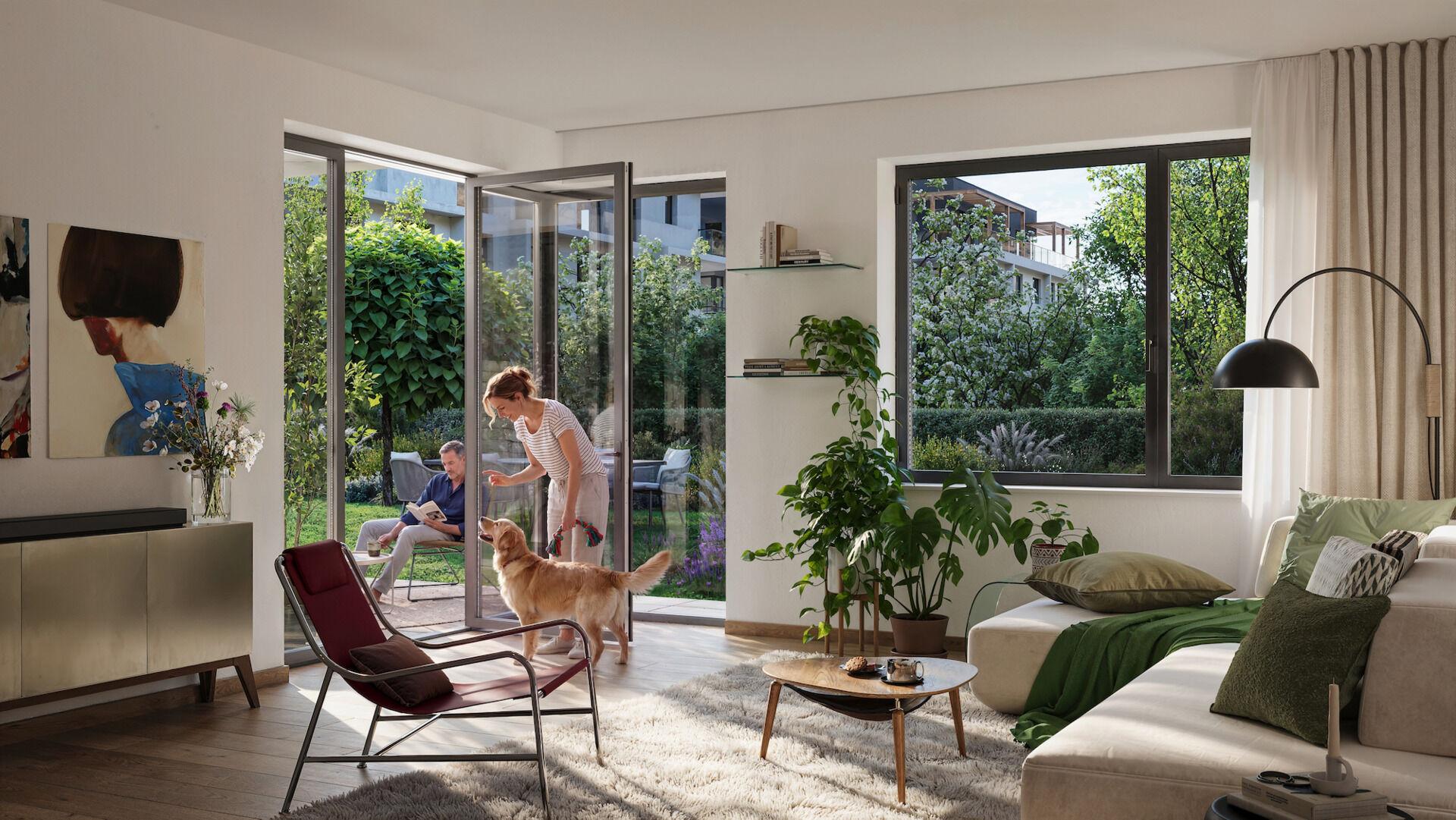 Chcete bydlet v prostorném bytě disponujícím soukromou zahradou o téměř 183 m²? Tento byt 3+kk o velikosti 90 m² se nachází v 1. podlaží komorního viladomu s pěti patry, což zaručuje maximální klid a soukromí. Součástí je terasa o 13,9 m² a zahrada o 182,4 m² – ideální prostor pro relax, rodinné posezení nebo vlastní zeleň.