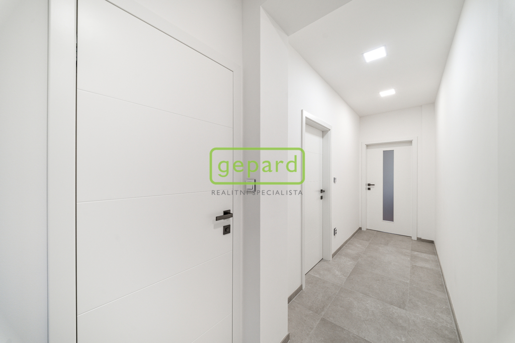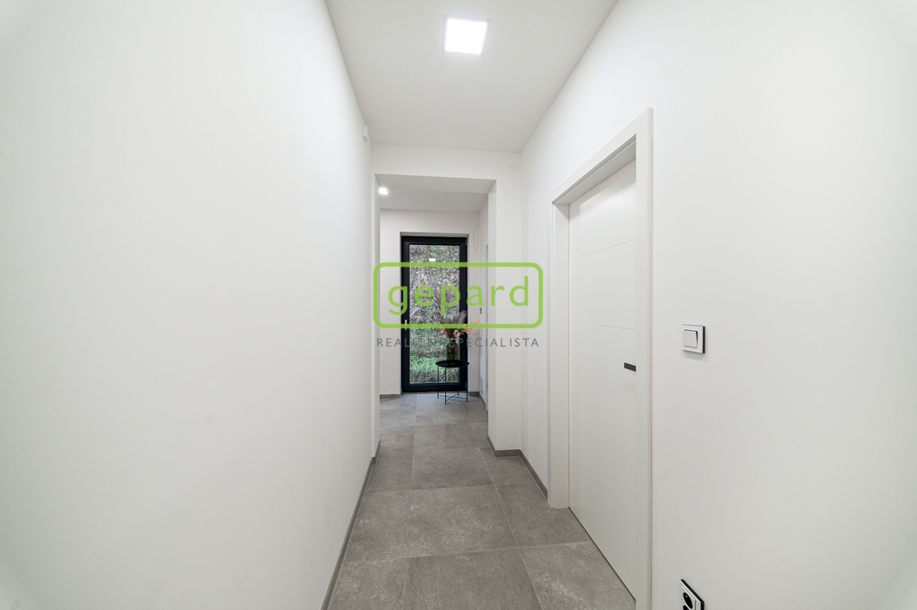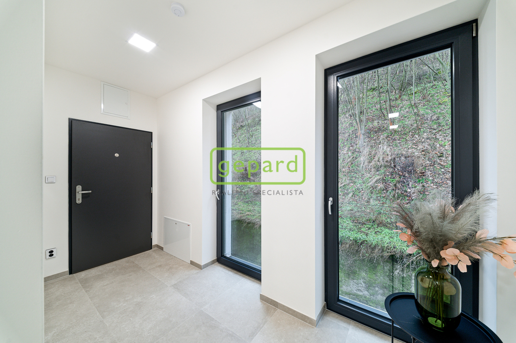 V celém bytě najdete mnoho nadstandardních prvků, jako je např. klimatizace a podlahové vytápění, což zaručuje spolu s tepelným čerpadlem a solárními panely pro ohřev TUV velmi nízké náklady na provoz bytu. V koupelně se nachází místo pro pračku i sušičku, závěsné WC, vana a sprchový kout. Obě ložnice a předsíň pak nabízejí celou stěnu pro případné vložení vestavěné skříně pro maximalizaci úložného prostoru.