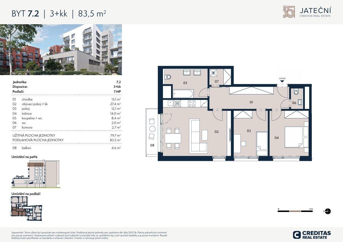 | Dispozice/podlahová plocha: | 3+kk/84 m² |