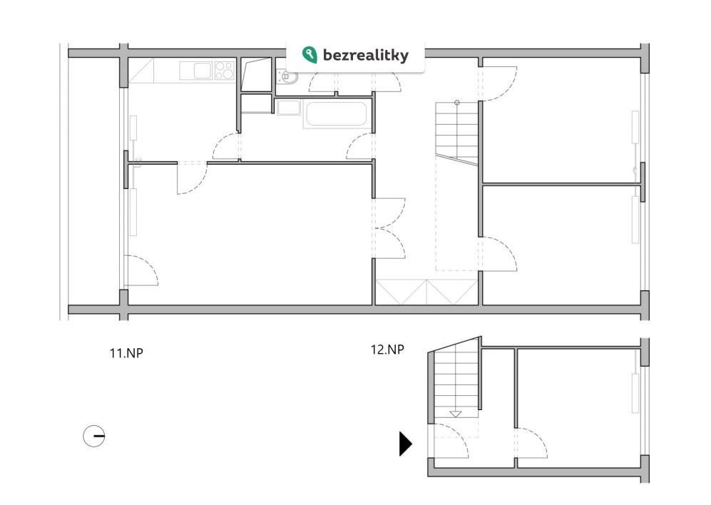 Byt je situován v 11. a 12. patře panelového domu se čtyřmi výtahy (vstup z 12. patra). Dům má celkem 13 nadzemních podlaží, což zajišťuje dostatek soukromí i výhledy do okolí.