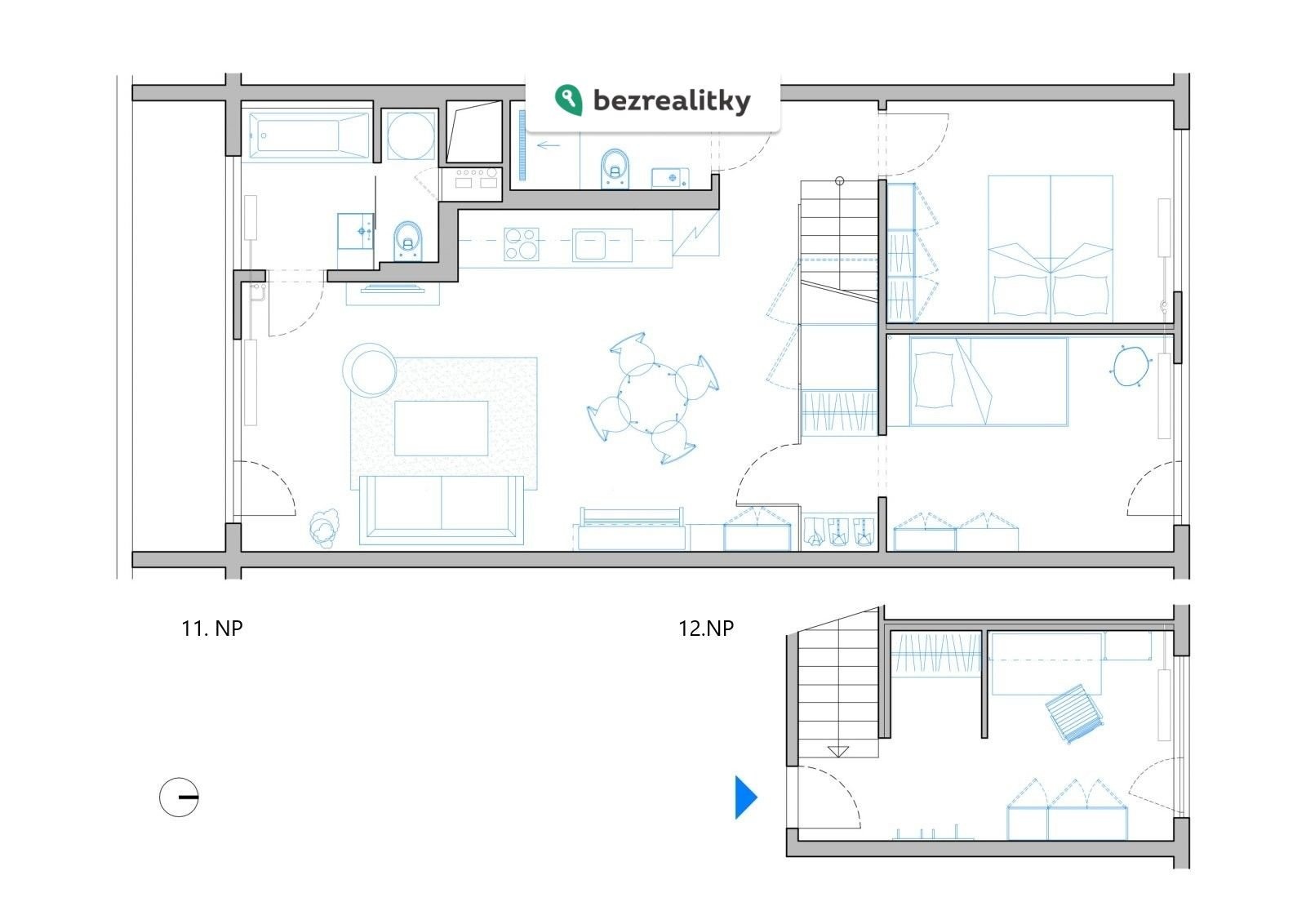 Dispozice mezonetu nabízí nadstandardní prostor a vzdušnost, která není u klasických panelových bytů běžná. Díky originálnímu řešení působí byt velmi otevřeně a příjemně.
