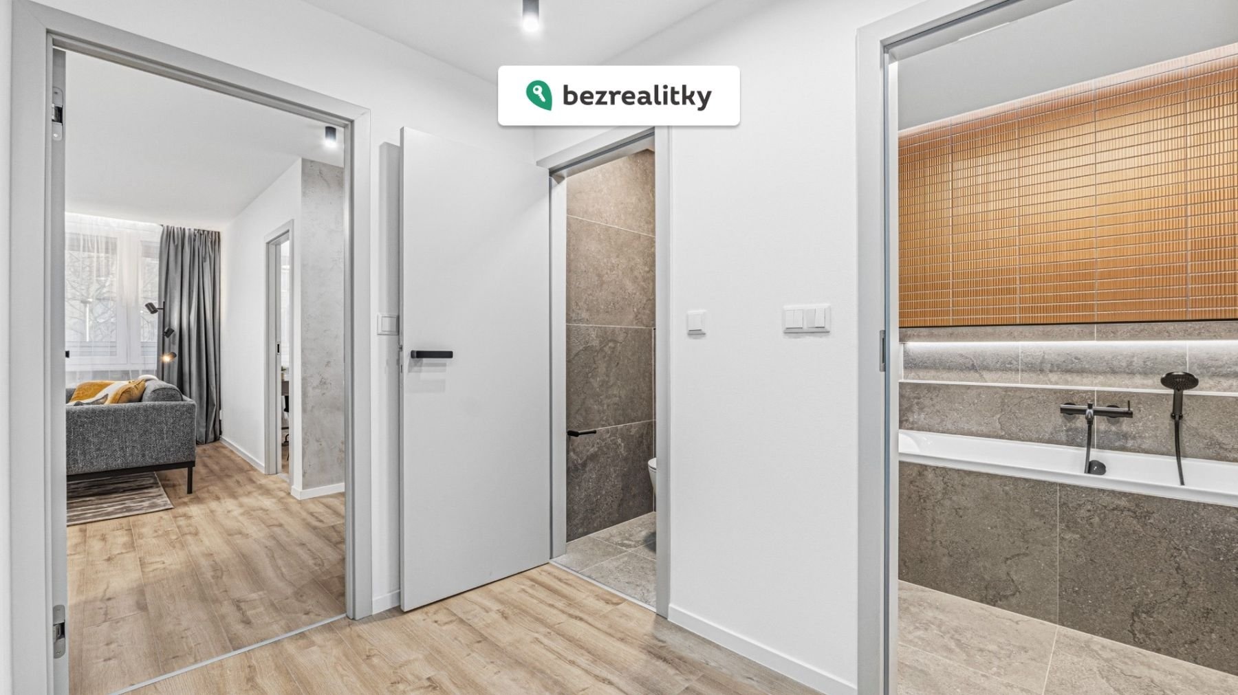 - Kompletně nové jádro včetně nové koupelny a toalety s podlahovým vytápěním