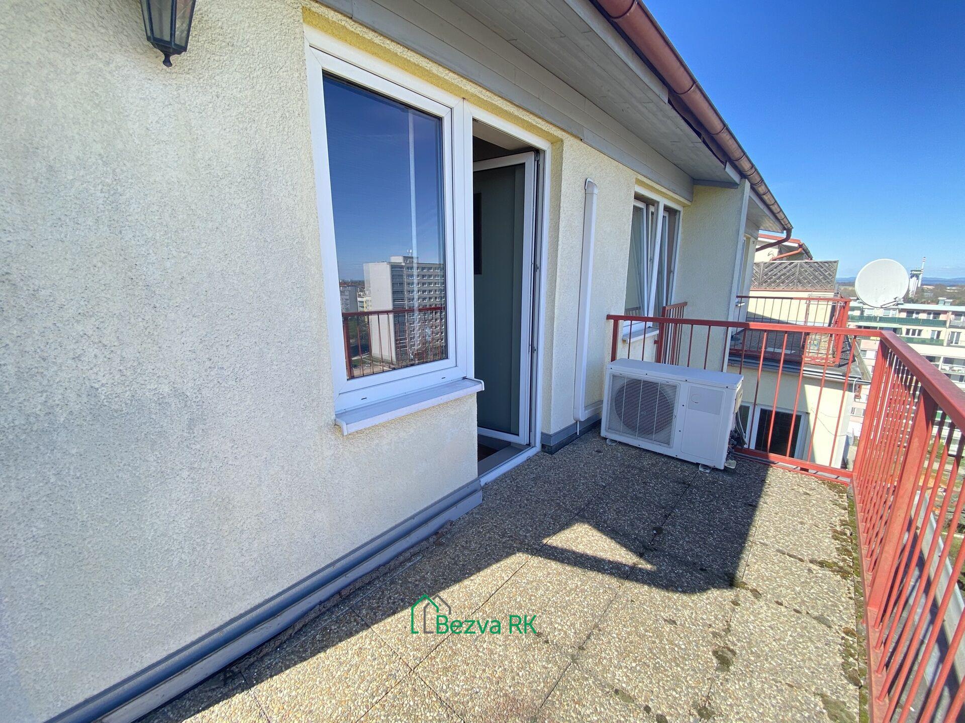 • Skutečným klenotem je terasa o rozloze 15 m². Místo, pro letní posezení s přáteli, pěstování rostlin, dětský bazén a nebo prostě jen pro pocit klidu vysoko nad shonem města.