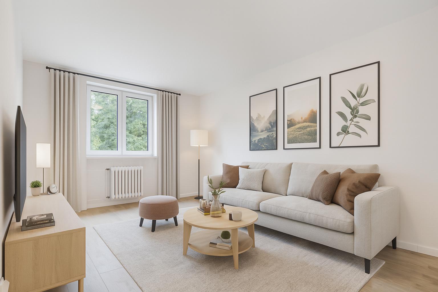 Byt prošel kompletní a kvalitní rekonstrukcí - nová okna, elektroinstalace, rozvody vody a plynu, omítky, koupelna i vytápění pomocí plynového kondenzačního kotle Bosch.