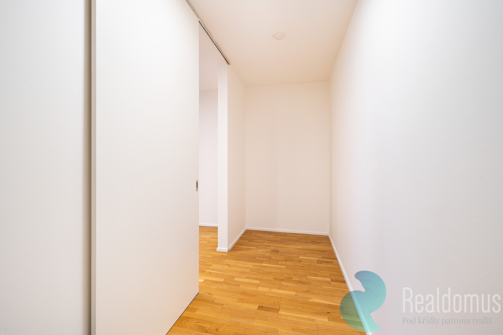 Byt je promyšleně dispozičně řešený tak, aby poskytoval maximální soukromí a komfort. Oddělení obytné a klidové části zajišťuje předsíň a především hala mezi obytnou a ložnicovou částí. Po vstupu do bytu vás přivítá prostorná předsíň (7,9 m²), ze které se vstupuje do vzdušného obývacího pokoje s kuchyňským koutem (23,9 m²). Na obytnou, rušnější část bytu navazuje hala, ze které je vstup do dvou neprůchozích pokojů (10,4 m² a 13,5 m²), ideálních jako ložnice, dětský pokoj či pracovna. Koupelna s vanou a WC je prakticky řešena přes malou předmístnost s umyvadlem.