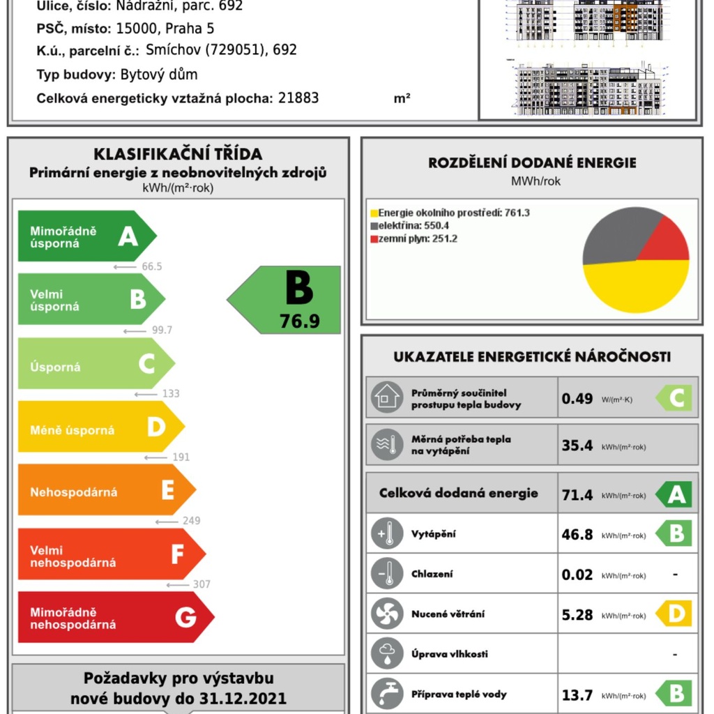 - Energetická náročnost budovy: B - Velmi úsporná