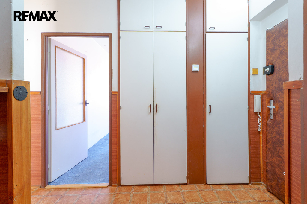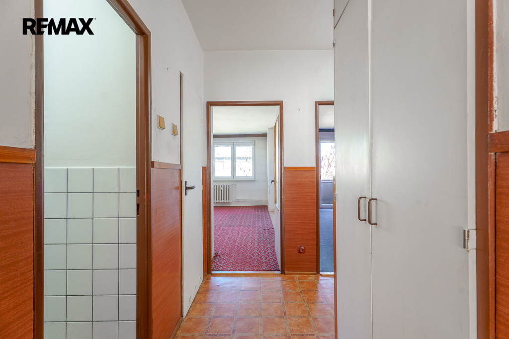 Z domovní chodby se vchází do předsíně bytu, která má praktické vestavěné skříně a samostatné vstupy do všech tří pokojů a kuchyně. Z předsíně - chodby bytu se rovněž vstupuje do koupelny s vanou a umyvadlem a na samostatné WC.