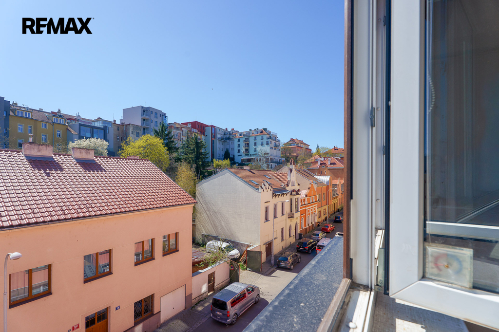 Byt je situován ve 4. NP pětipodlažního pěkného, cihlového bytového domu s novým výtahem.
