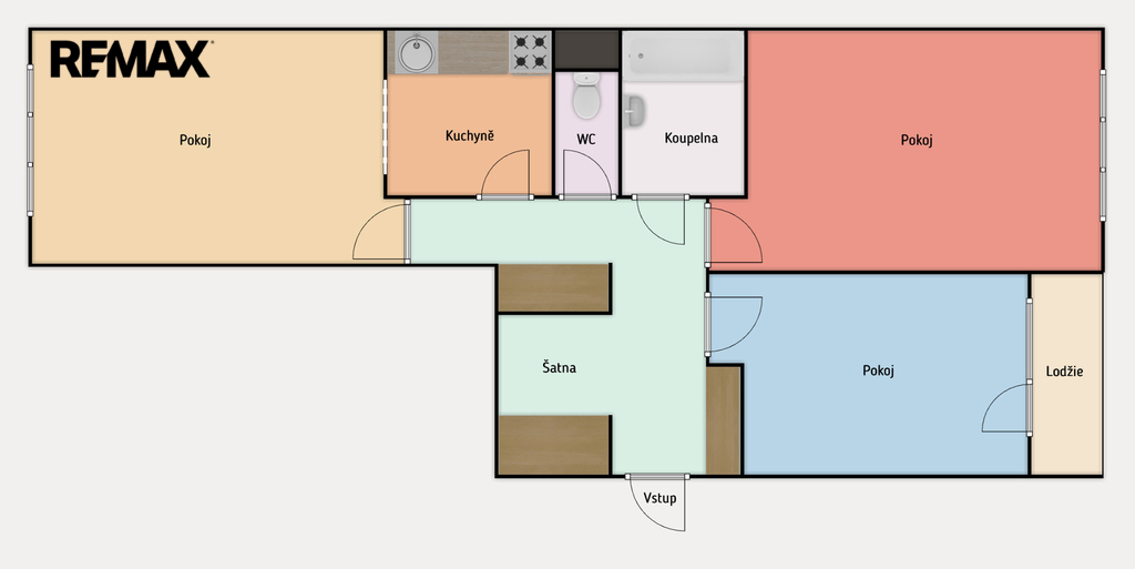 - Dispozice bytu: 3+kk