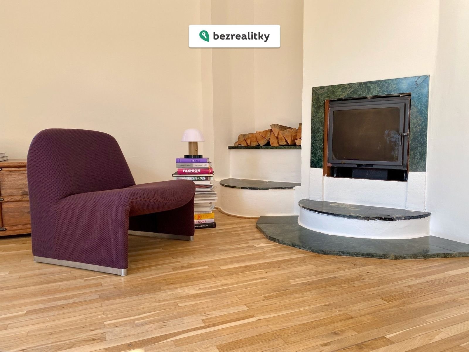 Sníte-li o krbu, vaše touhy budou v prostorném a vzdušném obývacím pokoji s terasou s výhledem do protilehlých kopců, plně saturovány. Navíc dřevo na jednu sezónu je k dispozici v ceně domu ;-) Zároveň v obývacím pokoji najdete i úkryt před letními parny; i v těch nejvyšších teplotách okolo 40°C je zde stabilních a snesitelných 24 °C.