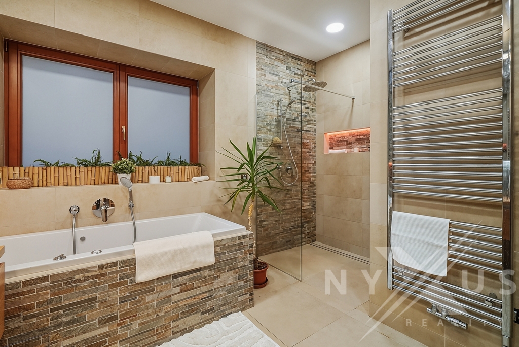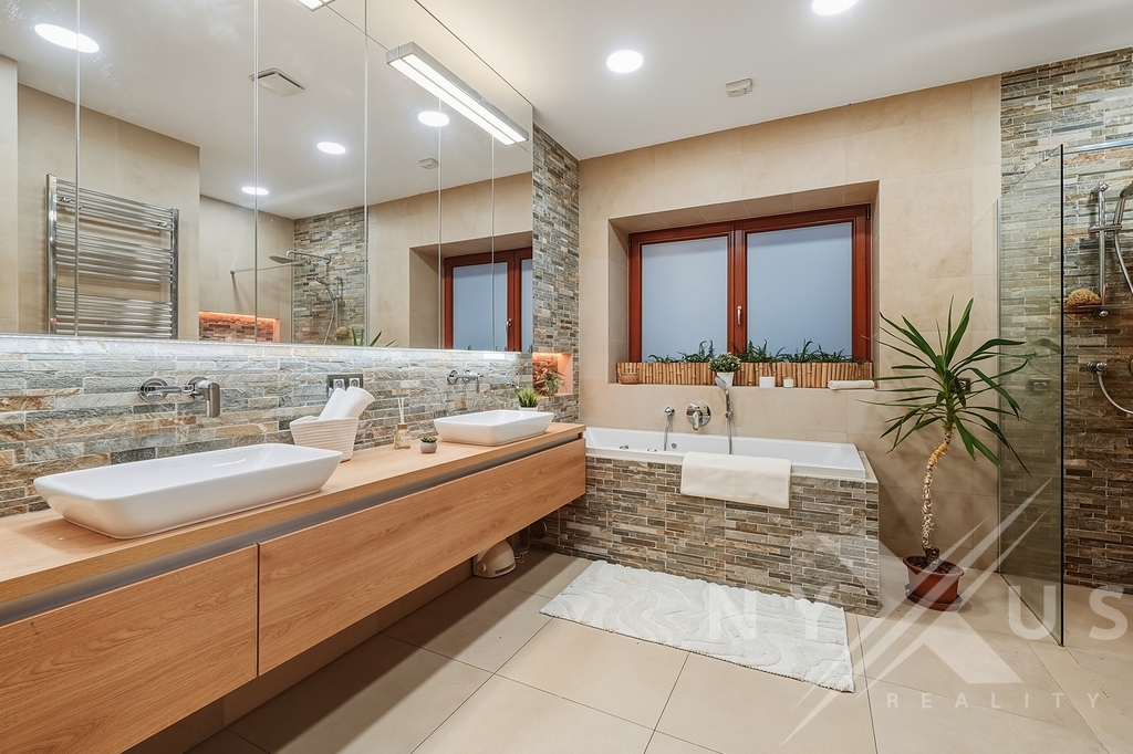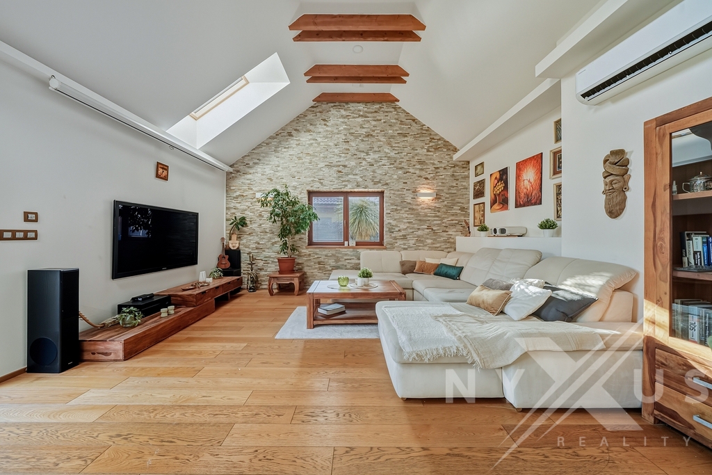 Velkým benefitem je sklep se samostatným vstupem ze zahrady, vhodný pro wellness, podnikání nebo skladování.