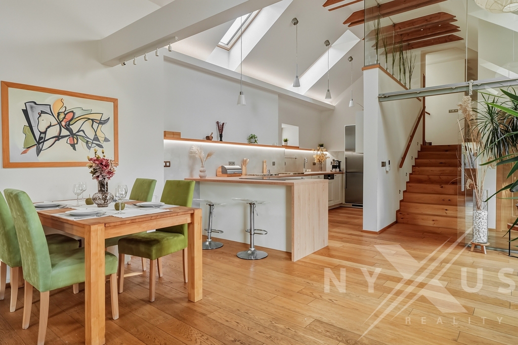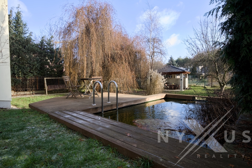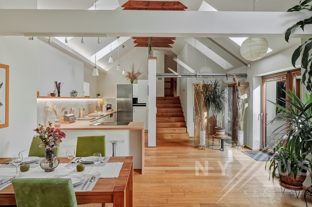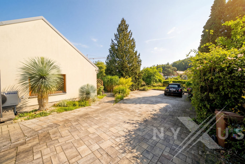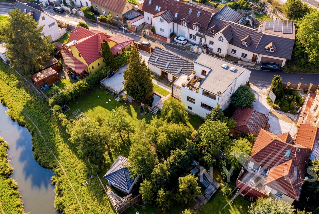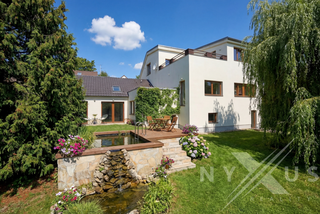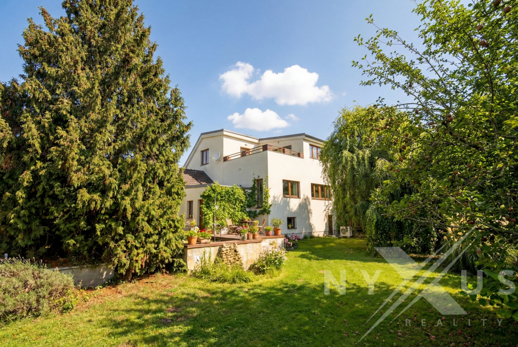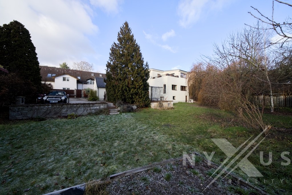 Dům je zasazený do klidného prostředí se zelení, s mírou soukromí, která v rámci Prahy není samozřejmostí.