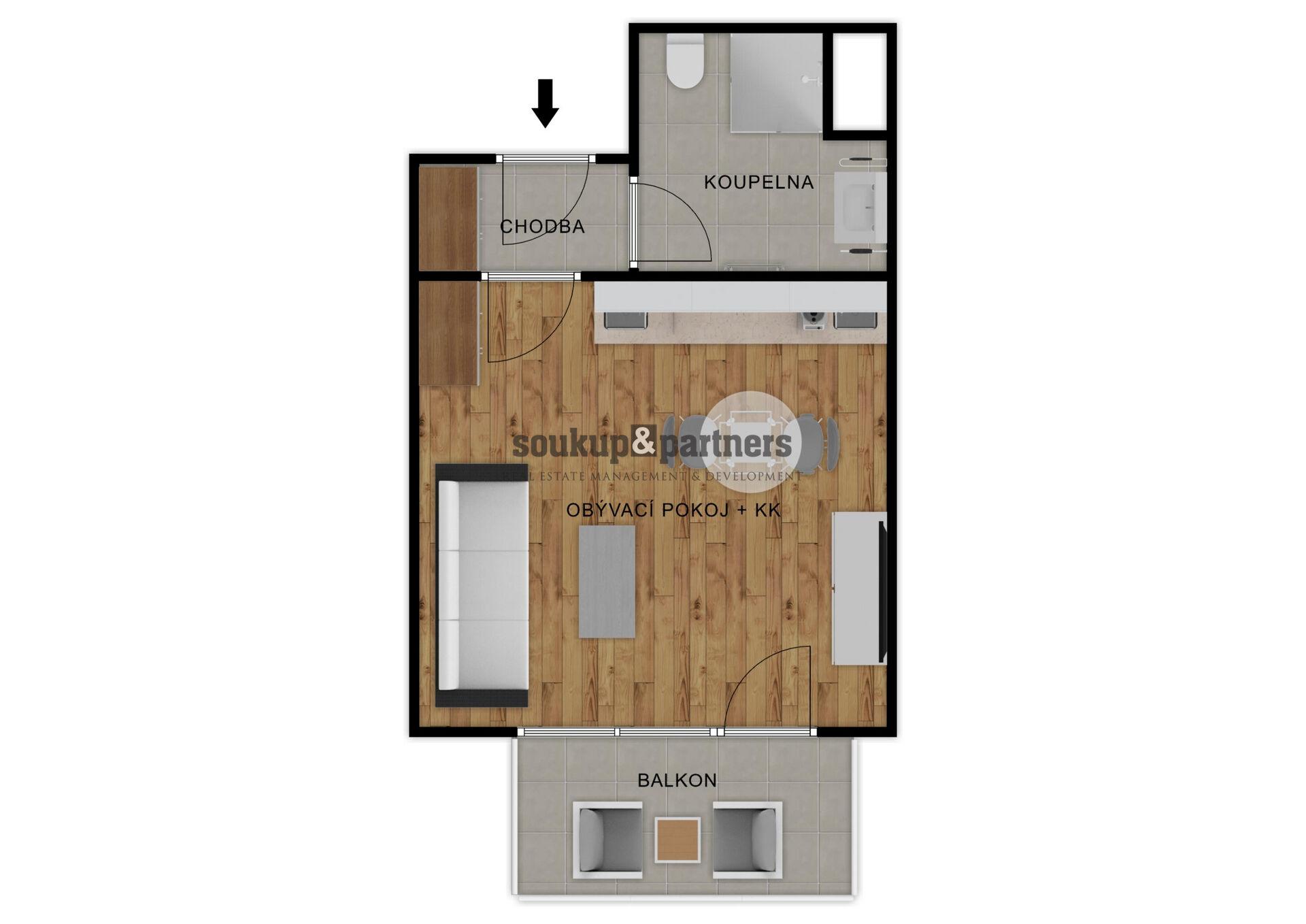 | Dispozice/podlahová plocha: | 1+kk/35 m² |