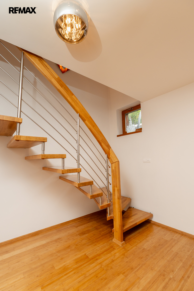 Veškerá sanita značky Villeroy & Boch je zárukou kvality a dlouhé životnosti. V celém domě jsou položeny kvalitní bambusové parkety.