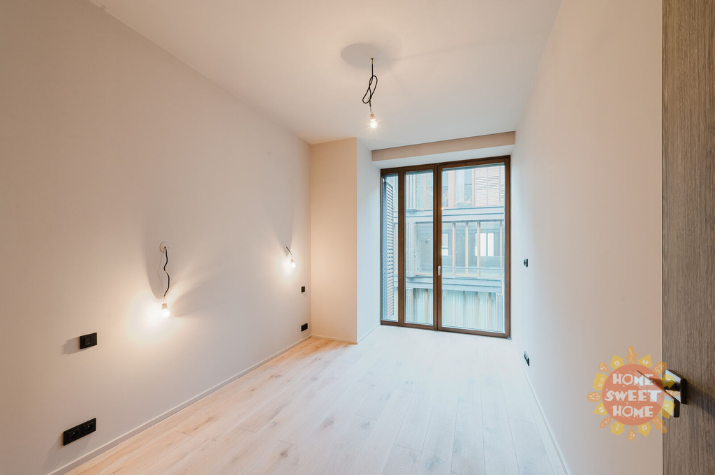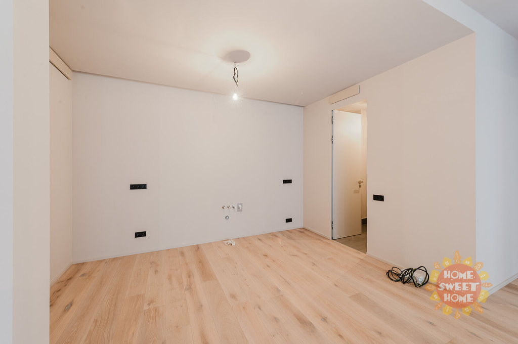 Byt je dokončen v nadstandardním provedení, připravený pro instalaci kuchyňské linky a osvětlení dle preferencí nového majitele. Obytný prostor spojený s kuchyní o celkové velikosti 30,93 m² poskytuje ideální místo pro relaxaci a společenský život, zatímco 2 ložnice o velikosti 16,77 m² a 12,46 m², nabízí klidnou zónu pro odpočinek. Součástí dispozice je koupelna s vanou i sprchovým koutem, WC a bidetem, samostatné WC šatna, sklad potravin, technická místnost a centrální chodba. K bytu náleží 2 parkovací stání v podzemních garážích, z čehož jedno s dobíjením pro EV, a sklep.