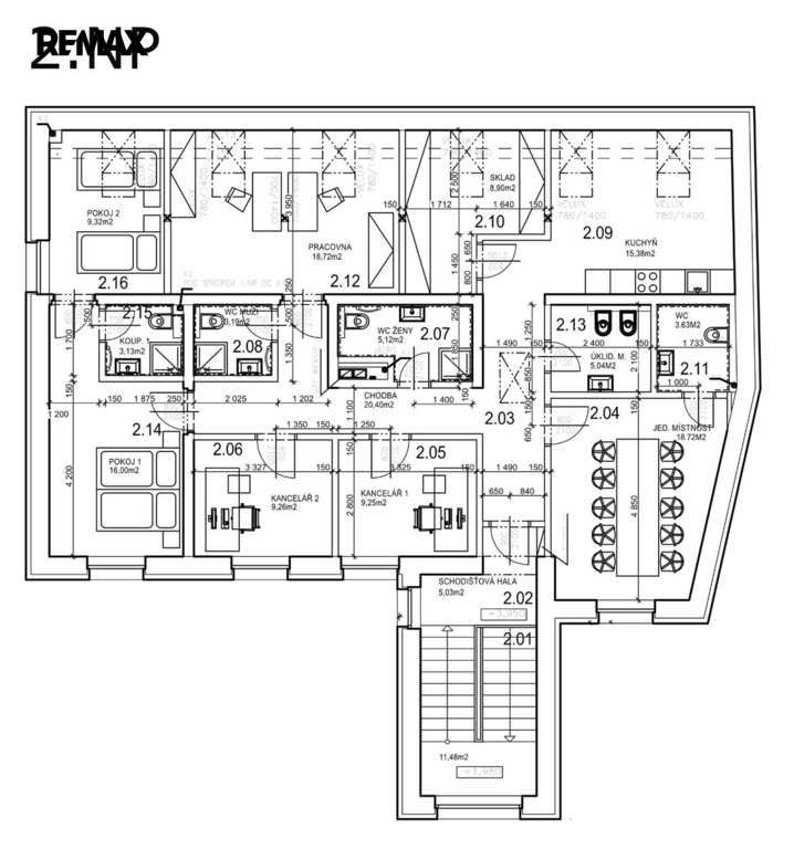 - Plocha kanceláří: 492 m²