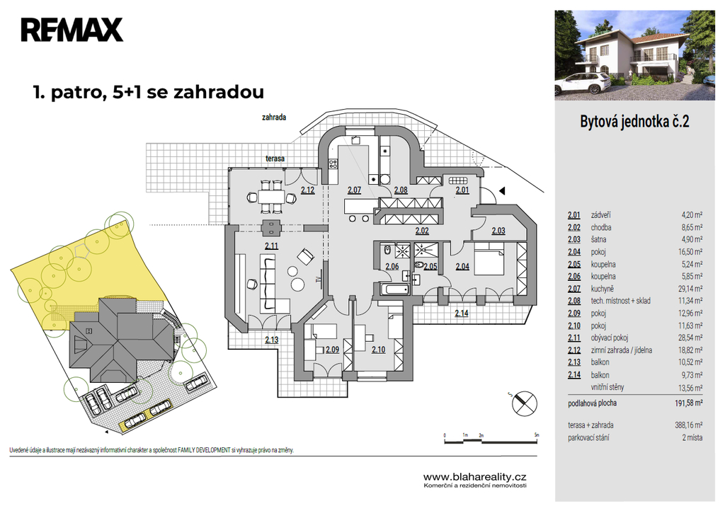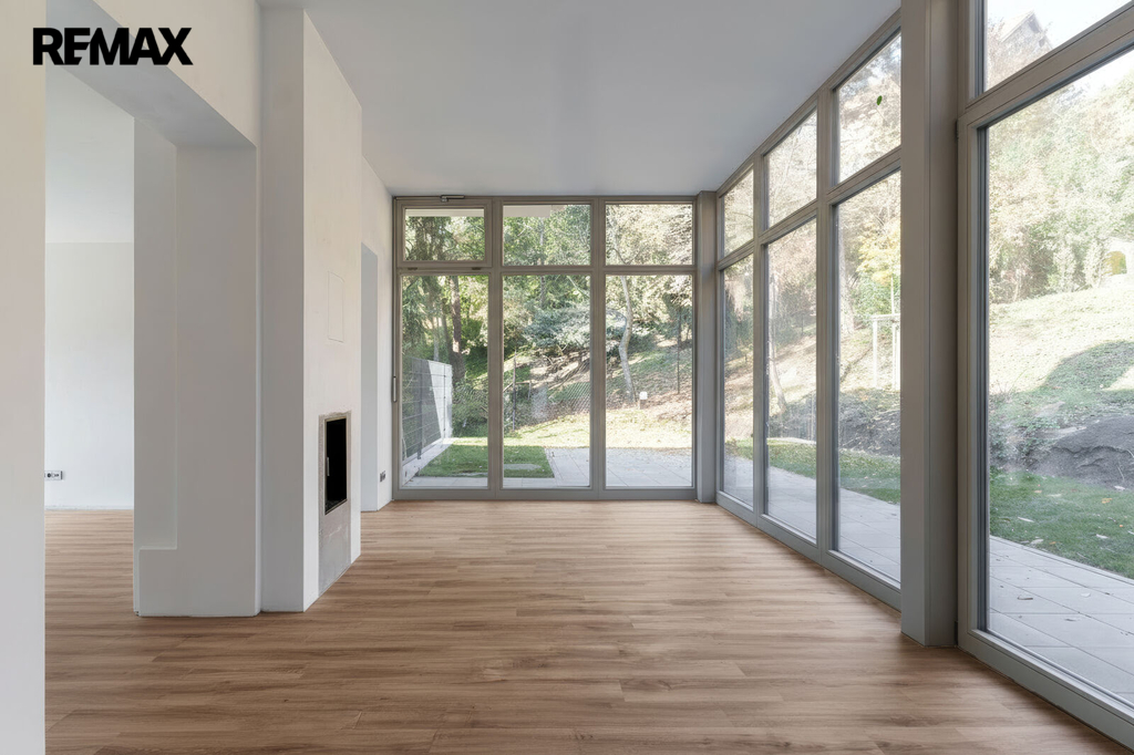 - Prostřední, velmi prostorný byt 5+1 nabízí 192 m², prosklenou jídelní část a vlastní zahradu 388 m².