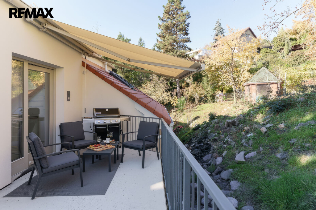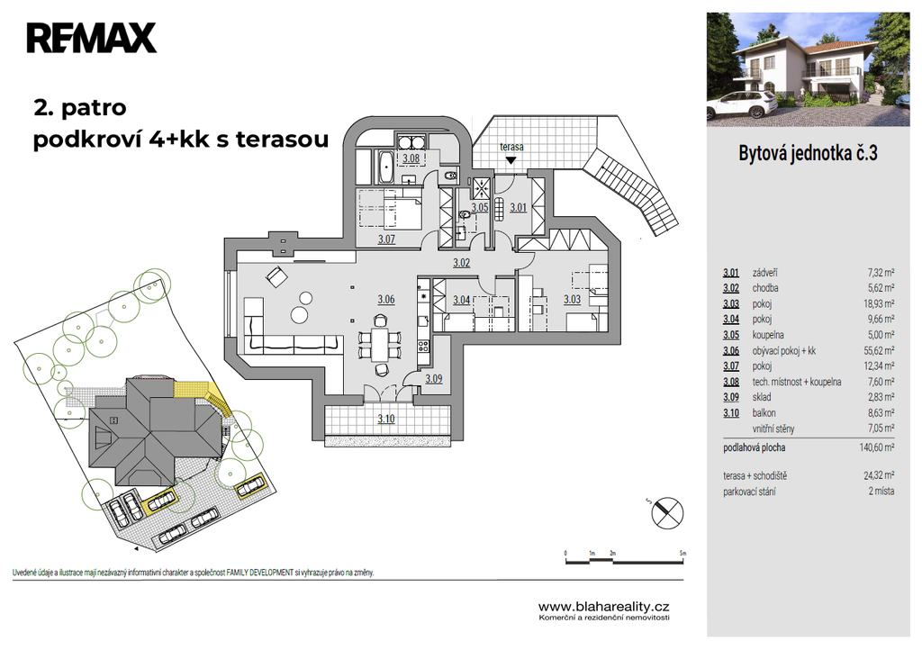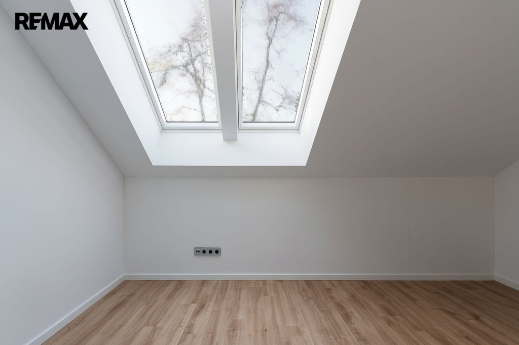 - Podkrovní byt 4+kk o velikosti 141 m² disponuje terasou o rozloze 24,3 m² a balkonem o velikosti 8,6 m².