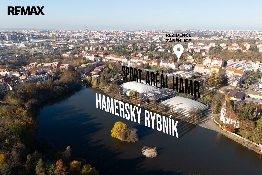 Pouhých pár kroků od domu se rozprostírá Hamerský rybník a sportovní areál Hamr s možností tenisu, squashe, badmintonu, fitness a dalších aktivit, stejně jako restaurace s terasou u vody.