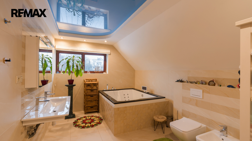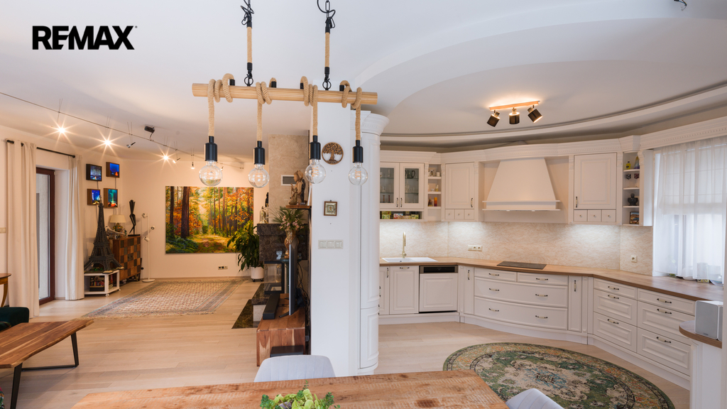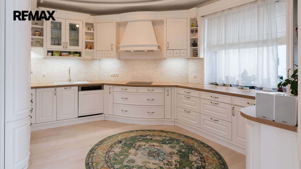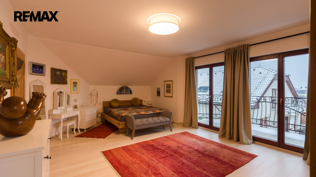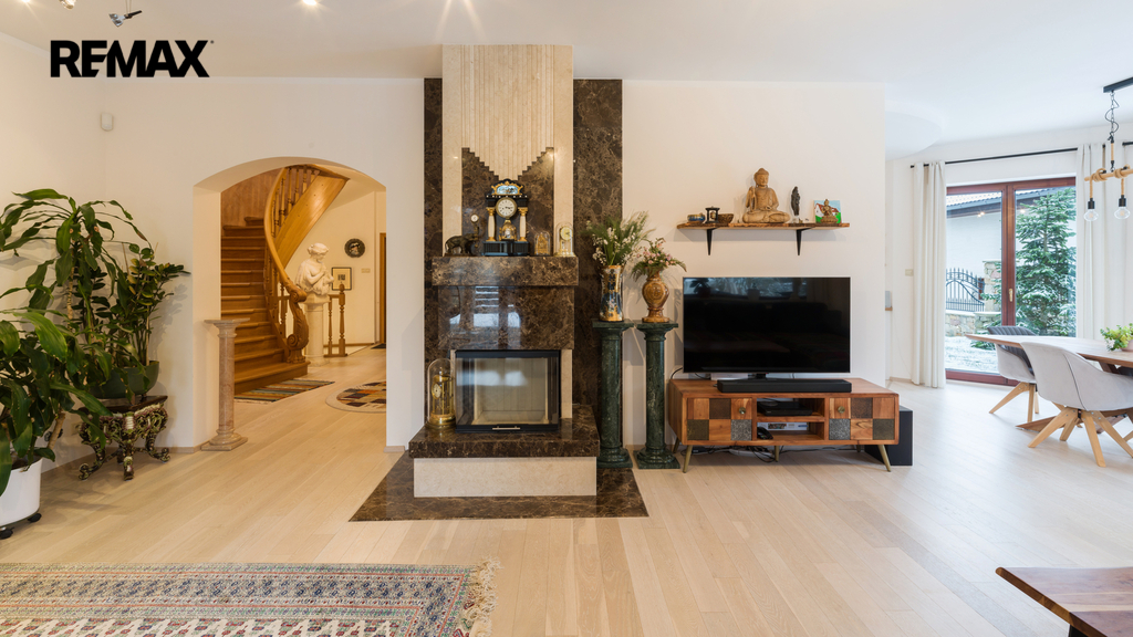 Použité materiály podtrhují celkový luxusní charakter nemovitosti – od žulových parapetů přes dřevěné podlahy až po prémiové vybavení kuchyně a koupelen.