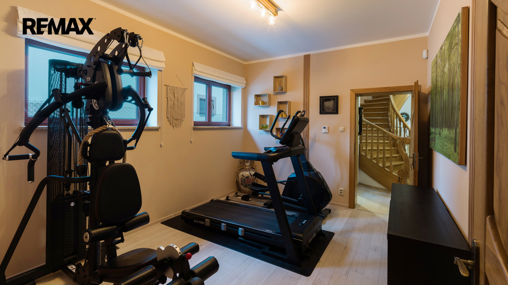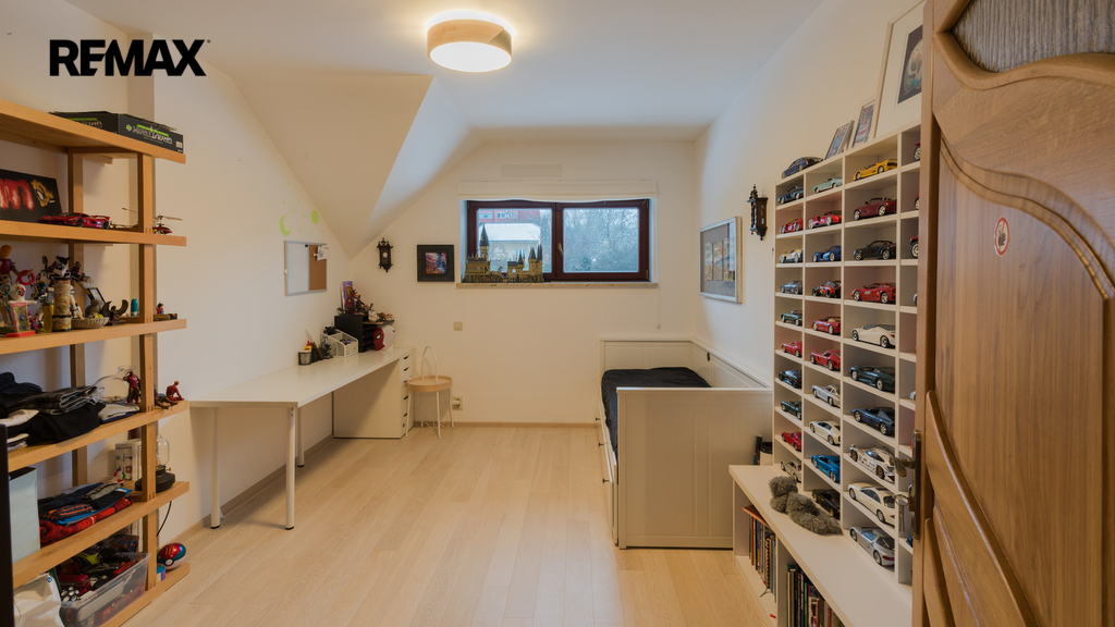 V patře se nachází tři ložnice, které lze flexibilně upravit dle aktuálních potřeb – ať už jako dětské pokoje, pracovna nebo pokoj pro hosty. V přízemí naleznete prostorný obývací pokoj plynule navazující na kuchyň a jídelní část se vstupem na terasu s novou pergolou. Součástí domu je také vlastní wellness zóna se saunou a posilovnou. V suterénu se nachází praktická prádelna, do které vede chytrý shoz prádla jak z přízemí, tak z patra.