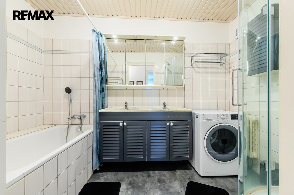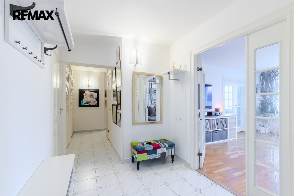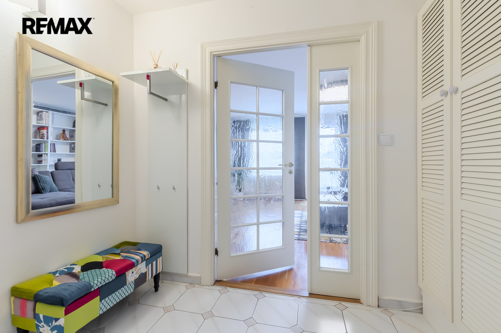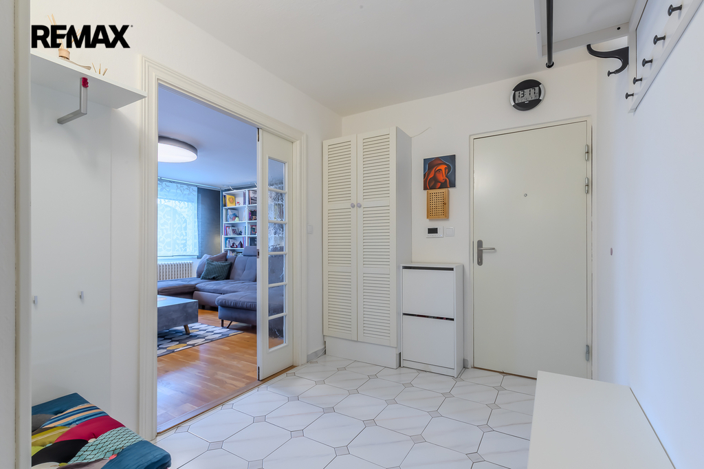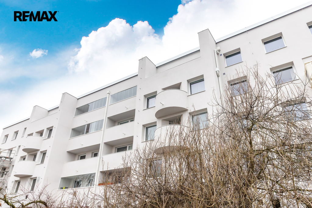 Interiér bytu byl udělán ve skandinávském stylu na míru prvním majitelem. Postupem času byly prováděny drobné úpravy, dispozice ale zůstala původní 3+1. K bytu náleží sklepní kóje v prvním poschodí a parkovací stání v přízemí domu - oboje součást kupní ceny.