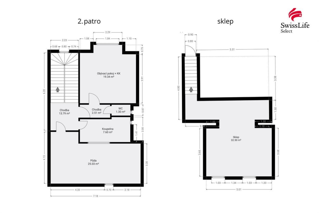 Užitná plocha domu: 159,5 m, sklep: 32,5 m, půda: 25 m. Celková využitelná plocha: 217 m