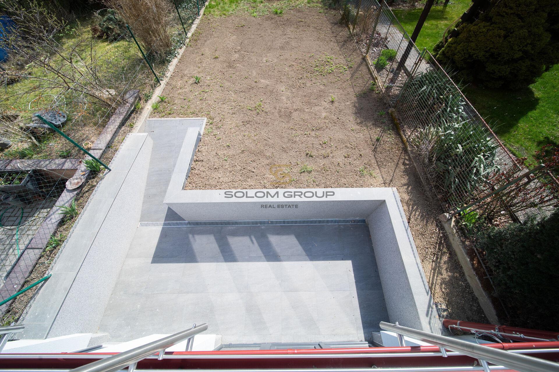 Přízemí zahrnuje prostorný obývací pokoj společně s jídelnou, místnost s přípravou pro kuchyňskou linku, dále samostatné WC a vstupní halu. Z obývacího pokoje je přístup na prostornou terasu o rozloze 22,88 m², ideální pro venkovní posezení a relaxaci.