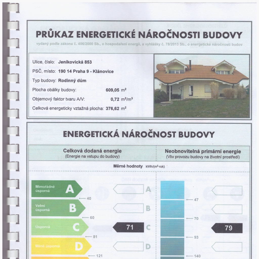 - Ukazatel energetické náročnosti budovy: 71 kWh/m²