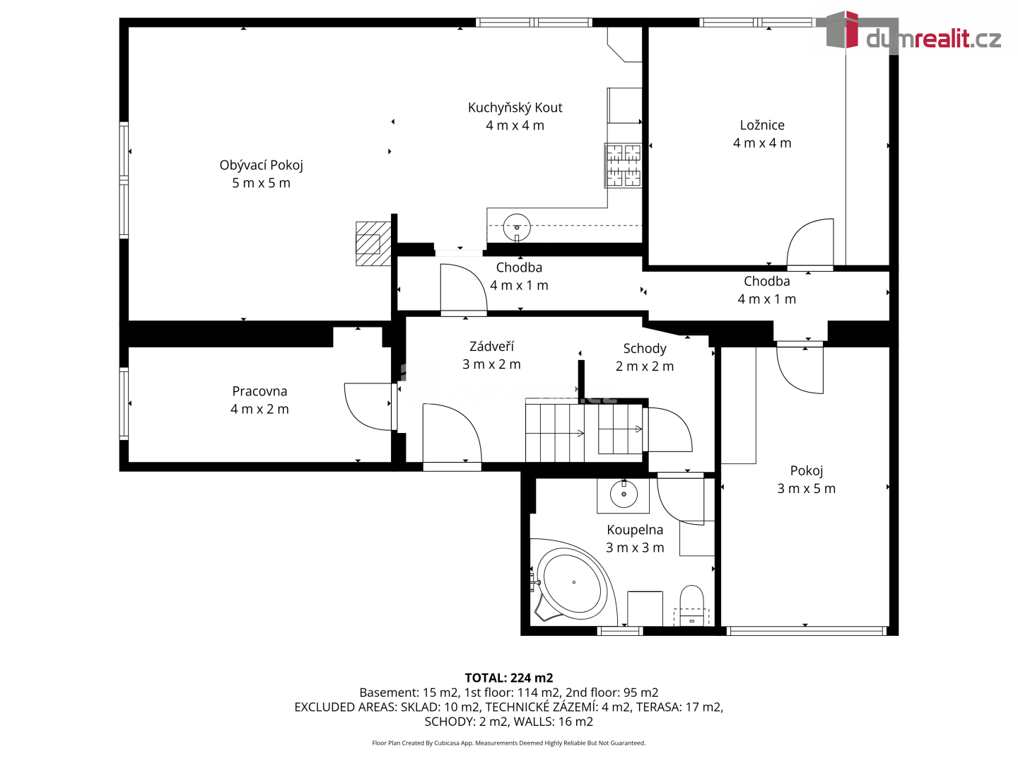 Celková užitná plocha: cca 224 m² (včetně příslušenství).