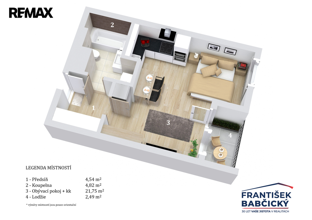 | Dispozice/podlahová plocha: | 1+kk/34 m² |