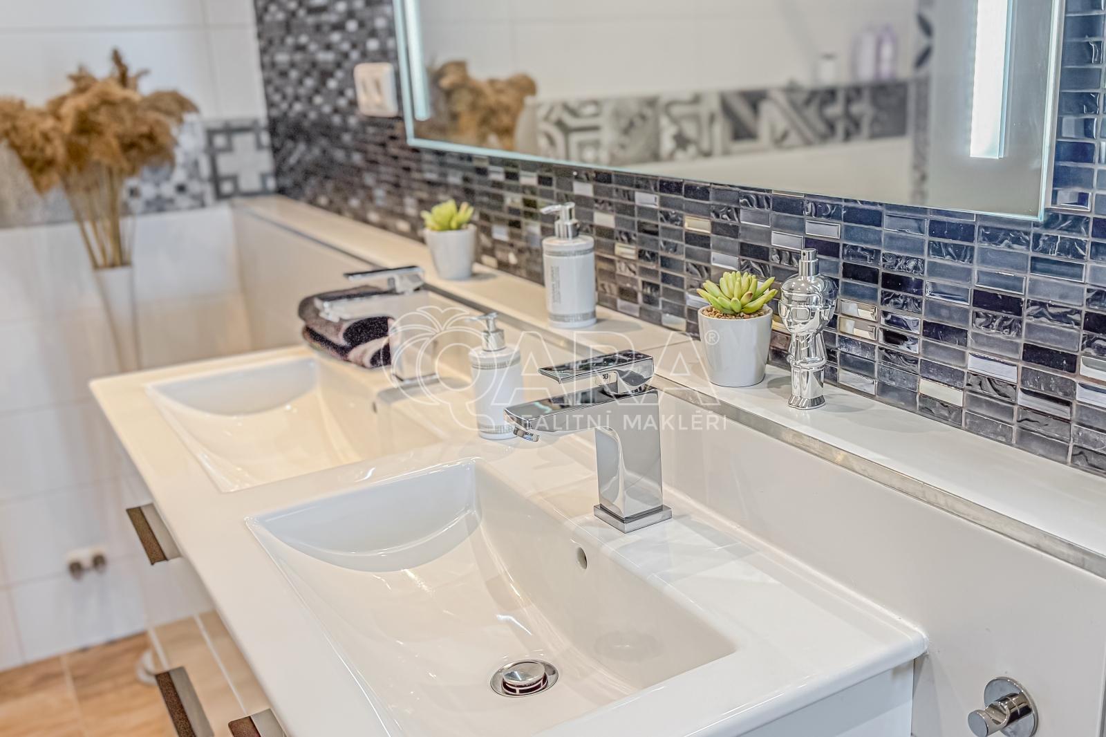 Byt zaujme také množstvím praktických úložných prostor, které u podobných dispozic nebývají běžné. K dispozici jsou vestavěné skříně v chodbě, samostatná prádelna, komora i další úložný prostor, takže je dostatek místa nejen pro každodenní fungování domácnosti, ale i pro sportovní vybavení nebo drobnou dílnu.