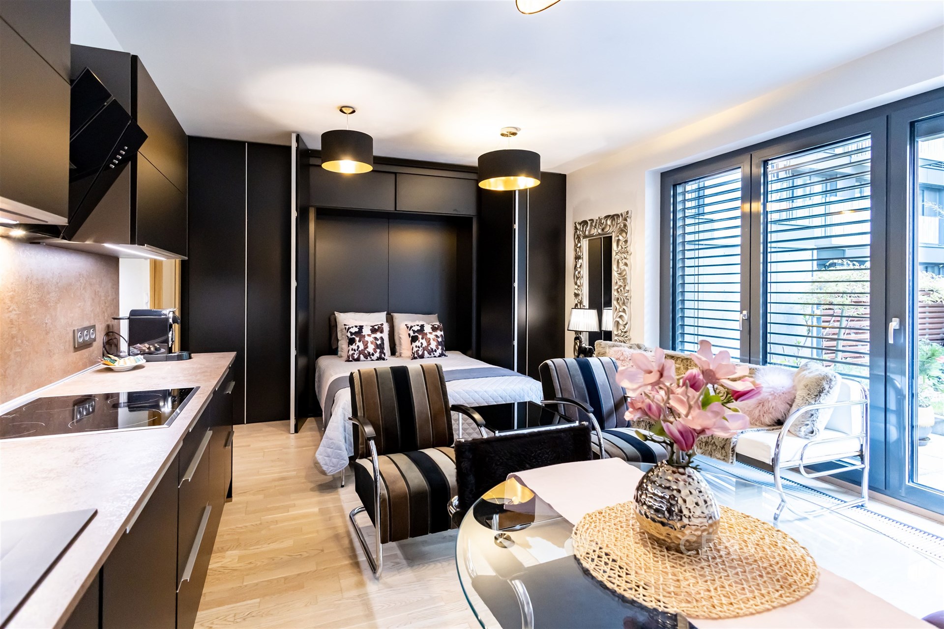 Nabízíme k dlouhodobému pronájmu stylový, kompletně zařízený byt o dispozici 1+kk a výměře 37 m², situovaný v prestižní rezidenci Garden Towers na rozhraní Vinohrad a Žižkova.