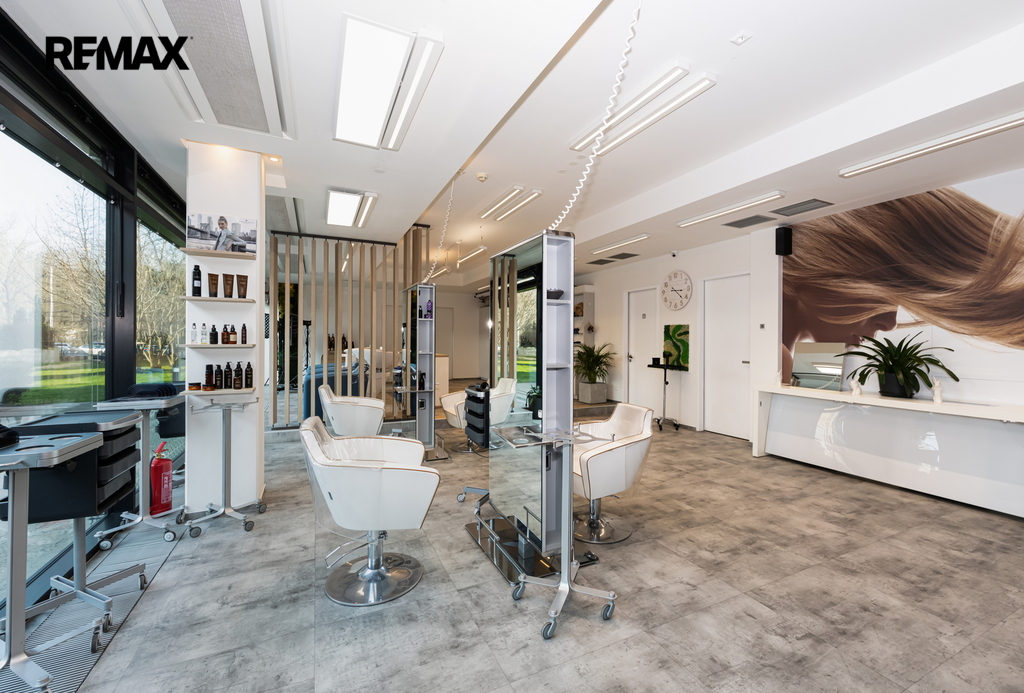 Salon o celkové ploše 177 m² se pronajímá včetně veškerého vybavení a nábytku, což umožňuje okamžité zahájení provozu bez nutnosti dalších investic. Jedná se o moderní a reprezentativní prostor s příjemnou atmosférou a stabilní klientelou.