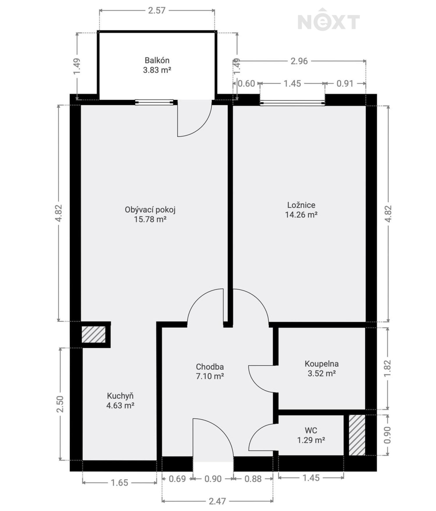 | Dispozice/podlahová plocha: | 2+kk/50 m² |