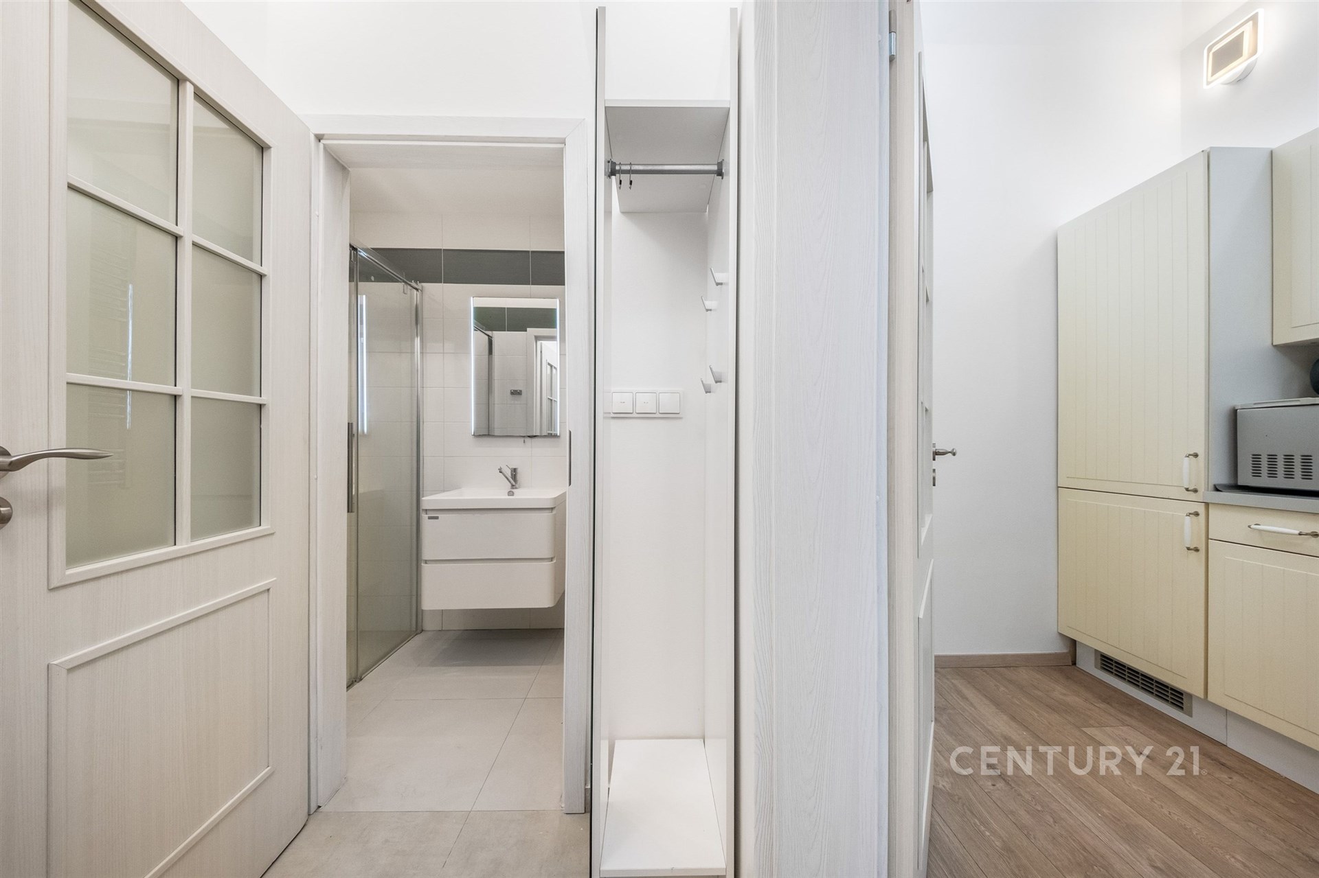 Byt je ve velmi dobrém stavu a nabízí komfortní bydlení v samotném srdci města. Je plně vybaven kvalitními spotřebiči a nábytkem – k dispozici je kuchyňská linka se spotřebiči (lednice, varná deska, trouba, digestoř, varná konvice), dále pračka, postel, gauč, televize a vestavěné skříně poskytující dostatek úložného prostoru.