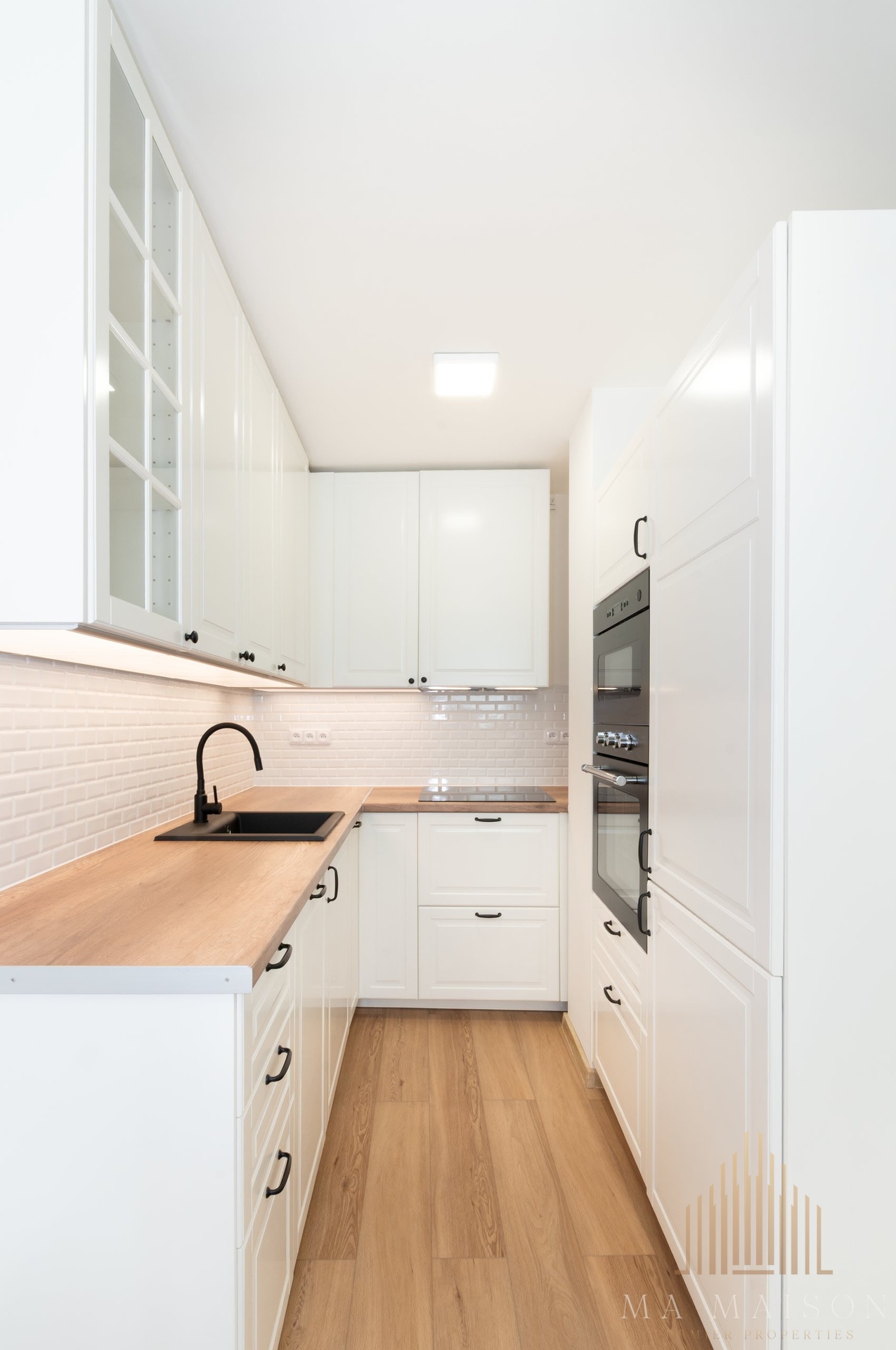- samostatná kuchyň s moderní kuchyňskou linkou a spotřebiči (sporák, trouba, mikrovlnná trouba, lednice s mrazákem, myčka)