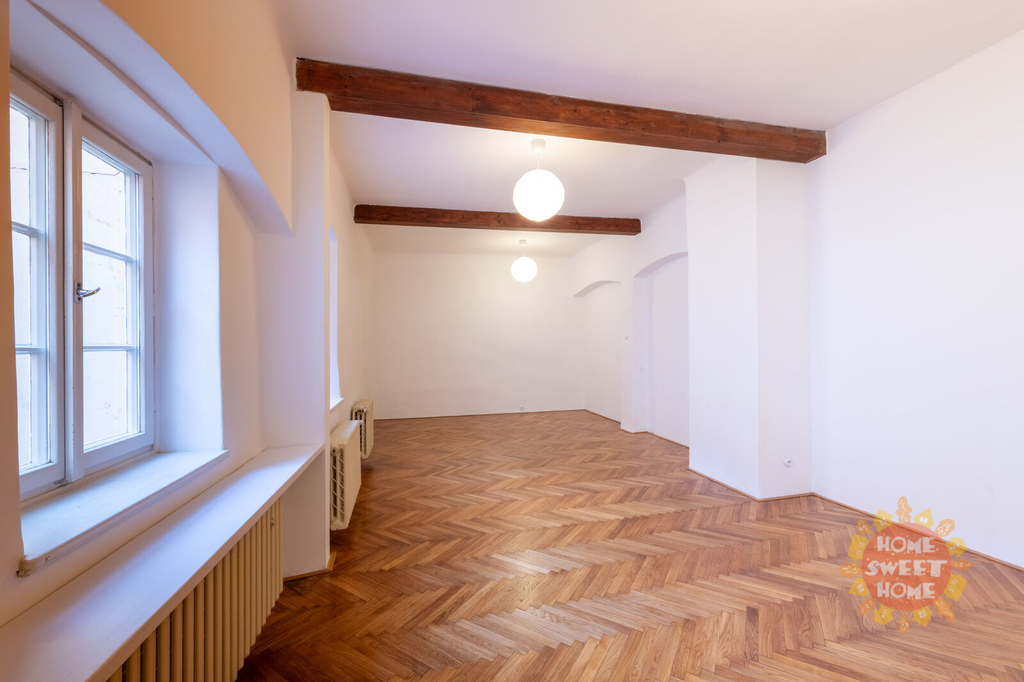 Byt je po renovaci a sestává z prostorného obytného pokoje, nové kuchyně se spotřebiči, koupelny s vanou a toaletou a předsíně. Milovníci Malé Strany ocení vstup do dome přes malebný udržovaný dvorek.